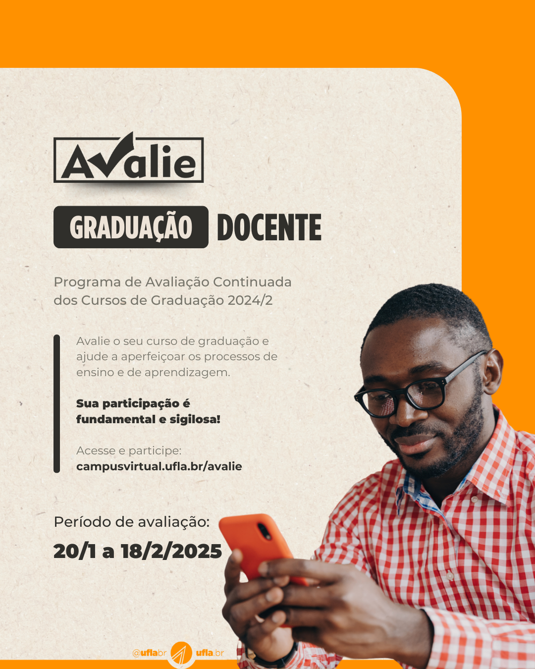 Realizado semestralmente, o Programa Avalie tem o objetivo de identificar a percepção de estudantes e professores sobre os cursos e componentes curriculares ministrados, para auxiliar na identificação das situações enfrentadas no cotidiano da comunidade acadêmica, bem como na introdução de possíveis encaminhamentos para soluções que forem necessárias.