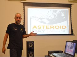 A programação começou às 19h e terminou às 22h. Professor Nogales e professora Karen fizeram uma breve apresentação das atividades do projeto que foram desenvolvidas no primeiro semestre. Logo após, o astrônomo amador que faz parte dos “Astrônomos sem Fronteiras” Cledison Marcos da Silva fez uma palestra sobre os asteroides, abordando descoberta, características, especificações, potencial de perigo para a Terra e curiosidades. Ele integra também a Bramon, organização sem fins lucrativos que tem como missão monitorar os meteoros, por meio de estações com softwares específicos, capazes de capturar dados e fornecê-los à comunidade científica. “Os asteroides são restos da formação do Sistema Solar. Nada mais é que um monte de entulho que fica girando em torno do sol. O termo “asteroide” vem do grego “áster”, estrela, e “oide”, semelhança. Que quer dizer uma quase estrela. Podemos afirmar que é um ponto brilhante que se movimenta”, explica Cledison Marcos.