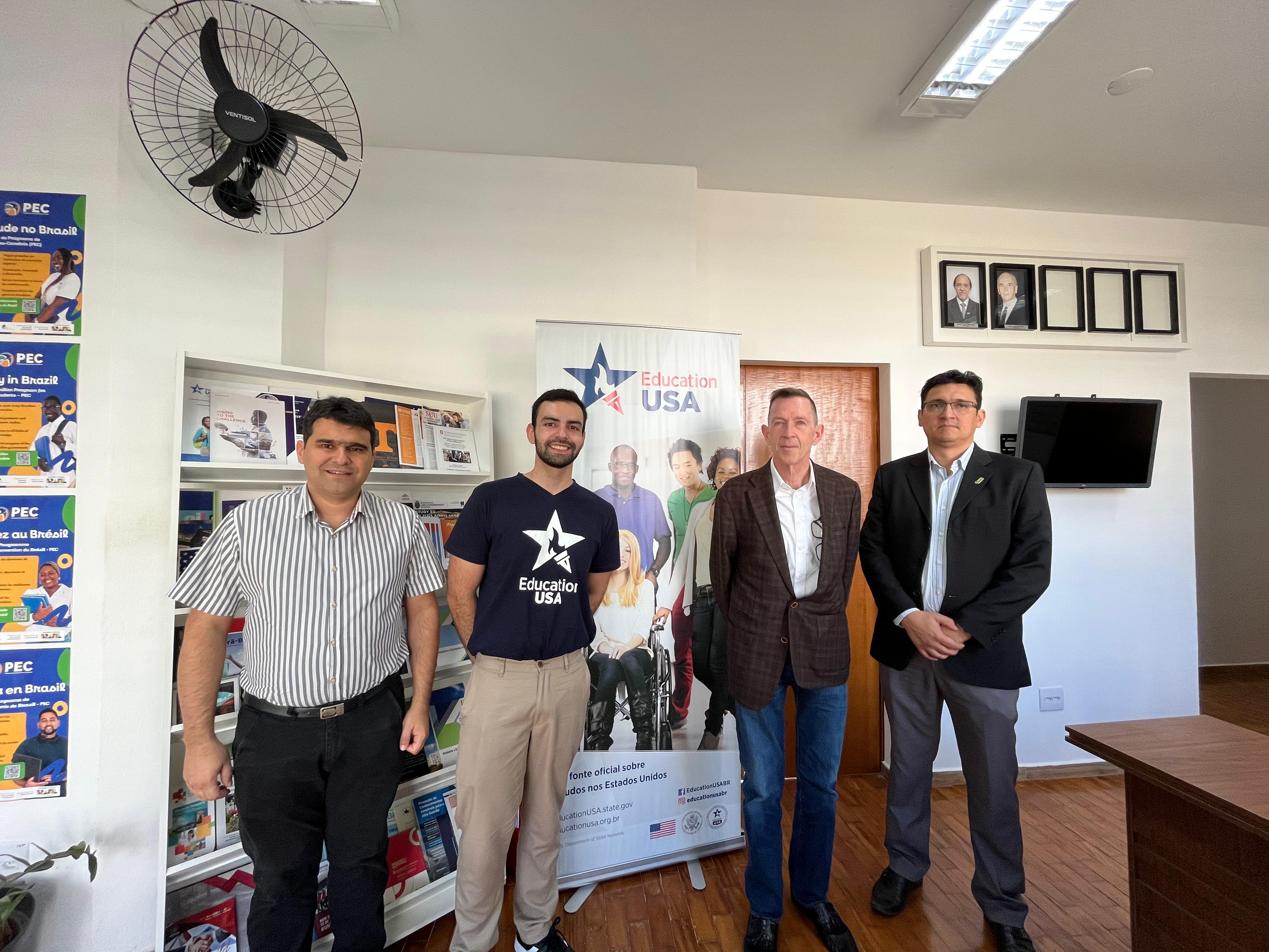 Durante a visita, o professor James Lyke foi recebido pelo diretor de Relações Internacionais, professor Flávio Medeiros, pelo chefe do Setor de Projetos e Indicadores da DRI, professor André Pimenta Freire (Icet/UFLA) e pelo pelo representante do escritório EducationUSA na UFLA, Felipe Romão.