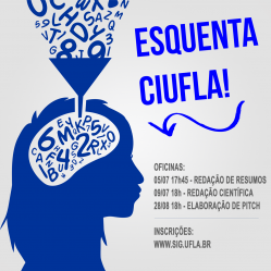 A Universidade Federal de Lavras (UFLA) realiza o Esquenta Ciufla 2018 nos dias 5 e 9 de julho e 28 de agosto. As inscrições estão sendo feitas pelo site do Sistema Integrado de Gestão (SIG). O evento é uma preparação para o Congresso de Iniciação Científica (Ciufla), realizado anualmente na universidade, com o objetivo de divulgar os resultados das pesquisas desenvolvidas pelos alunos de graduação da instituição.