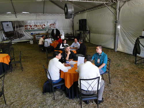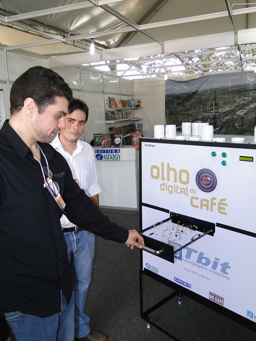 O estande da UFLA na Expocafé 2011 contou com a exposição de livros da Editora UFLA e tecnologias inovadoras para o café, como o indutor de resistência desenvolvido pela equipe do professor do Departamento de Fitopatologia (DFP) Mário Lúcio Vilela Resende, coordenador do Instituto Nacional de Ciência e Tecnologia Café (INCT/Café). Nesta sexta (17), também estava exposto o protótipo do “Olho Digital”, tecnologia desenvolvida pelos empreendedores Igor Chalfoun Pomárico de Souza, Adriano Arlei de Carvalho e pelo professor do Departamento de Administração e Economia (DAE), Joel Yutaka Sugano.Articulação Universidade-Empresa No estande da Syngenta, o visitante teve a oportunidade de ver uma parceria de sucesso de integração universidade-empresa. Trata-se da apresentação do Software Agrocustos, desenvolvido pela equipe do Centro de Inteligência em Mercados (CIM), coordenado pelo professor do Departamento de Administração e Economia (DAE), Luiz Gonzaga de Castro Júnior. O software está sendo implantado pela Plataforma NUCOFFEE, em um programa piloto para avaliação dos técnicos e acompanhamento dos produtores. A demonstração do programa estava sob a responsabilidade do coordenador do grupo Gestão Estratégica Avançada (GEA/CIM), Cássio Henrique Garcia Costa.
