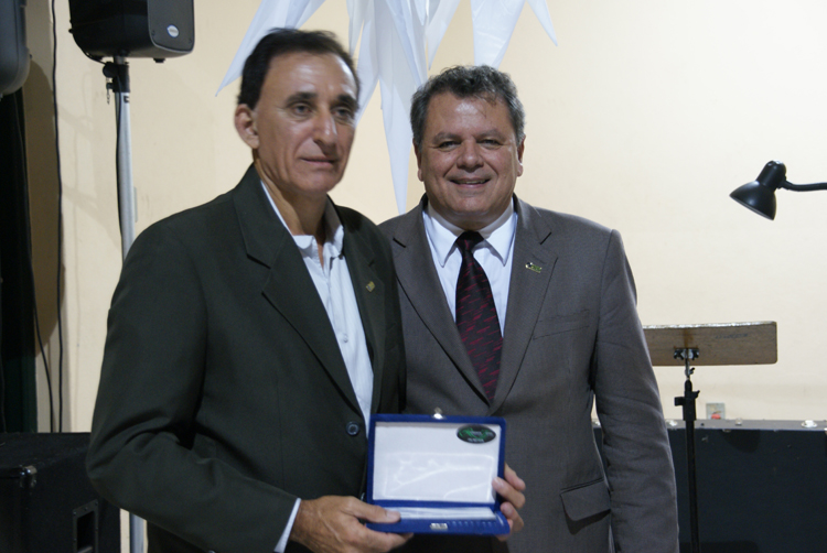 Presente à cerimônia, o reitor da UFLA e professor do Departamento, Antônio Nazareno Guimarães Mendes, fez a entrega de homenagens aos professores Fábio Cartaxo, João Márcio Rios e Nilton Nagib Jorge Chalfun.