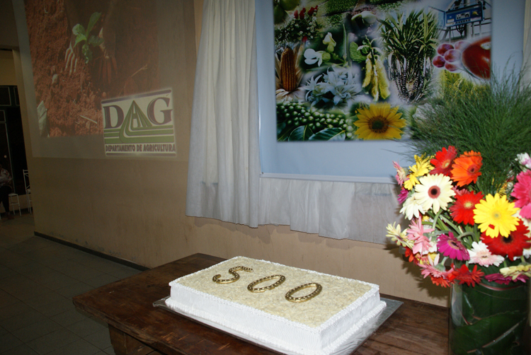 Na sexta-feira (11), professores e técnicos administrativos do Departamento de Agricultura (DAG) estiveram reunidos no Centro de Integração Universitária (Ciuni), para a celebração da 500ª reunião do departamento, com pauta festiva. A mesa de honra foi composta pelo chefe do DAG, professor Gabriel José de Carvalho, pela secretária Simone Santos Dias e pelos professores Fábio Pereira Cartaxo (diretor da ESAL no período 1971 a 1975) e João Márcio de Carvalho Rios (diretor da Esal no período 1979 a 1983), que redigiu a ata de fundação do Departamento, em janeiro de 1966.