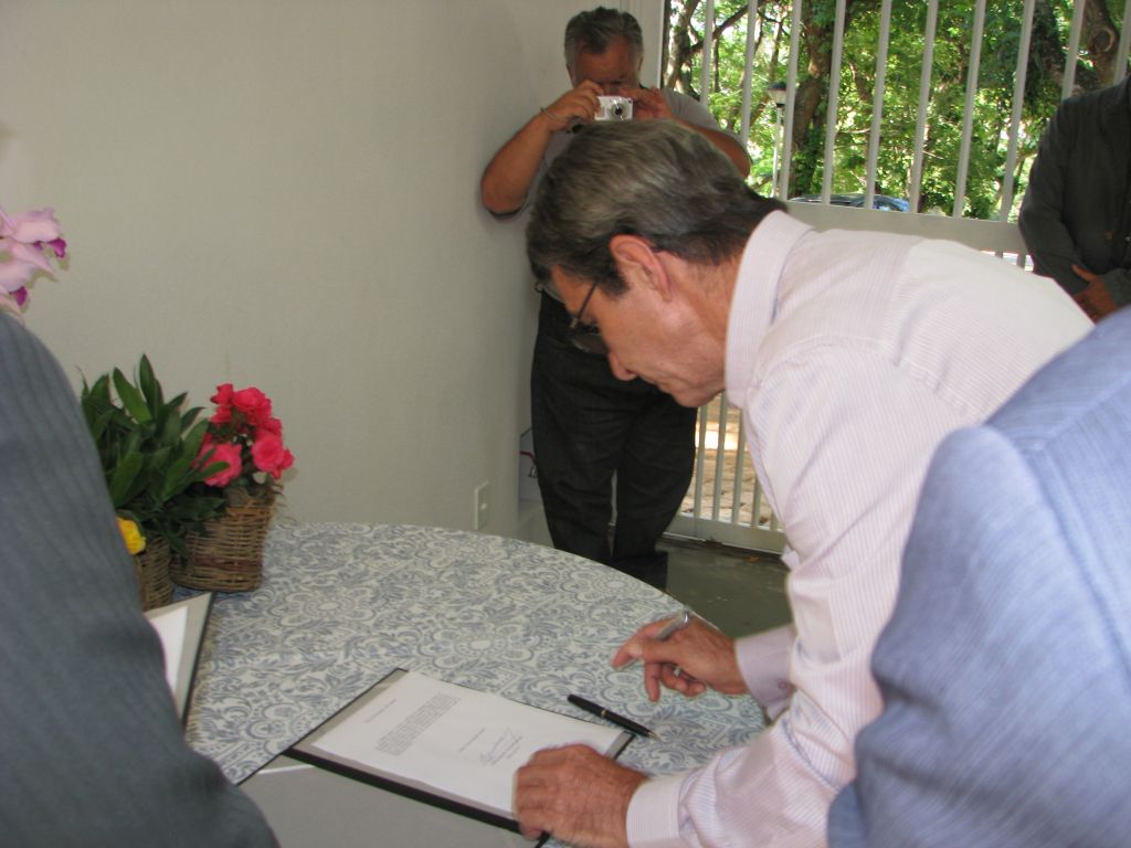 Na sexta-feira (18), representantes da Universidade Federal de Lavras (UFLA), da Universidade Autónoma do Estado do México (UAEM) e Fundação João Pinheiro estiveram reunidos no Salão dos Conselhos (Reitoria), para a assinatura de um protocolo de intenções para projetos de cooperação na área da Administração Pública. Com o protocolo, a UFLA junta-se a outras 15 instituições do México, Estados Unidos, Argentina e Brasil, que integram a Rede Internacional de Investigadores em Administração – Gestão, Sustentabilidade e Políticas Públicas em Governos Locais.
