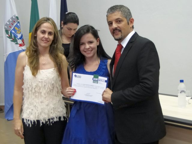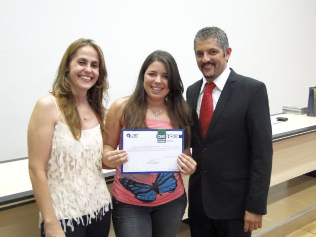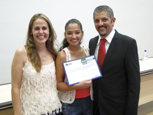 A solenidade de entrega dos certificados contou com as presenças do reitor em exercício da UFLA, professor José Roberto Soares Scolforo, pró-reitor de Pesquisa, professor Luis David Solis Murgas, coordenadora do Programa BIC Júnior na UFLA, professora Patrícia Vasconcelos Almeida, além de bolsistas, familiares e amigos.