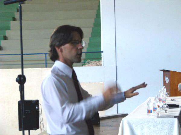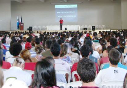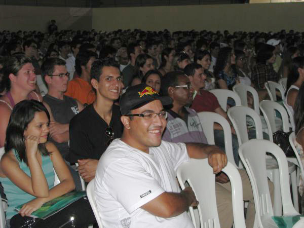 Com muito bom humor, o Professor Pachecão apresentou a palestra “A Arte de Realizar Sonhos”. Ele trouxe exemplos de sua própria trajetória para motivar os presentes a realizarem seus objetivos: “Vocês entraram na universidade, já deram o primeiro passo. Não há fórmulas para o sucesso, mas é preciso ‘ser sincero e desejar profundo’”, ressaltou, citando o músico Raul Seixas.