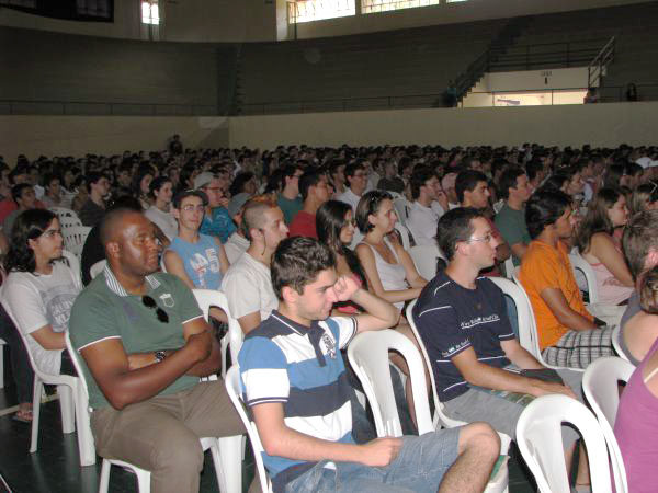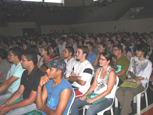 A Universidade Federal de Lavras (UFLA) recebe os calouros do primeiro semestre de 2012 e realiza uma programação especial de recepção. A comunidade acadêmica (calouros, pais, estudantes veteranos, professores e técnicos administrativos) lotou o Ginásio Poliesportivo da universidade na tarde do dia 26 de fevereiro (domingo) para assistir à palestra do Professor Pachecão e receber os informes da Pró-Reitoria de Graduação.