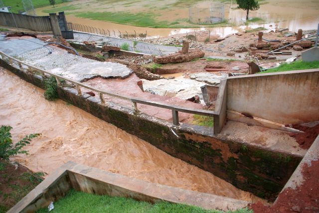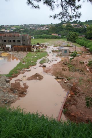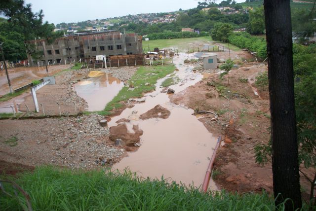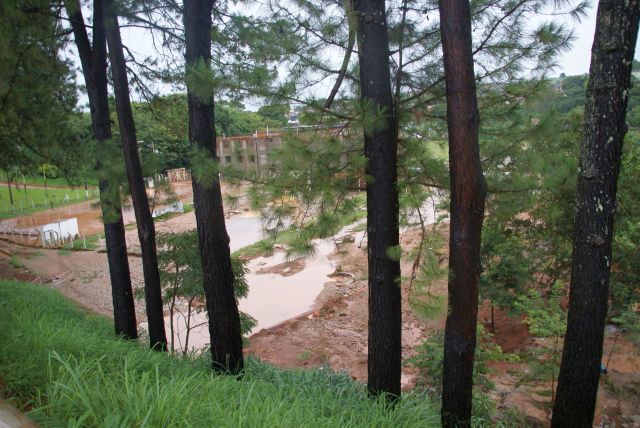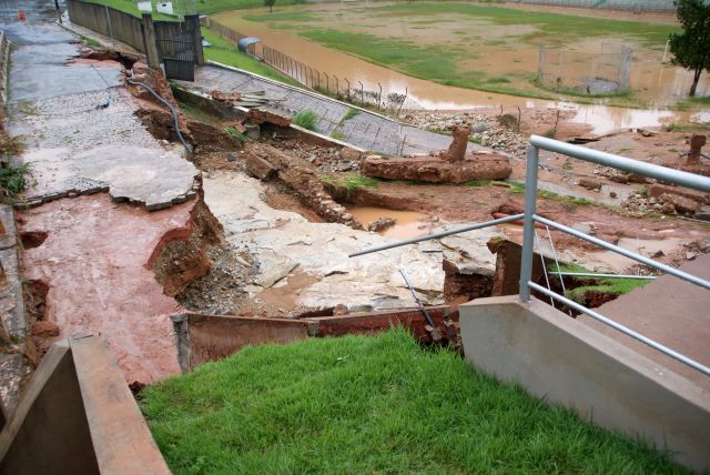 - Alargamento e drenagem do córrego em toda a sua extensão no câmpus da Universidade e reconstrução da galeria para vazão de água;