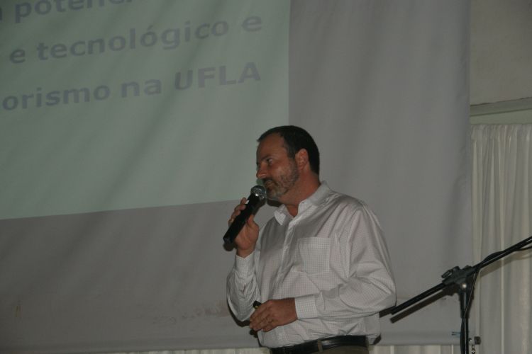 O professor Nilson Salvador, pró-reitor de Extensão e Cultura, falou sobre a importância da extensão no âmbito da Universidade e passou a palavra para representantes do Núcleo de Empresas Juniores (Nejufla) e Liga Esportiva da UFLA (Leufla).