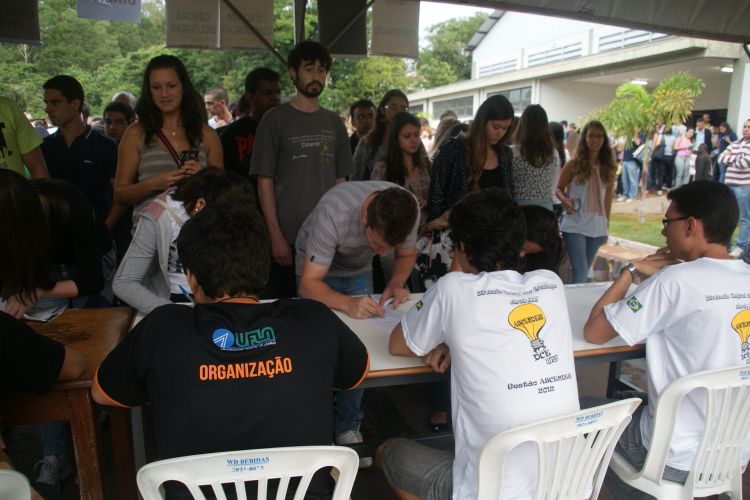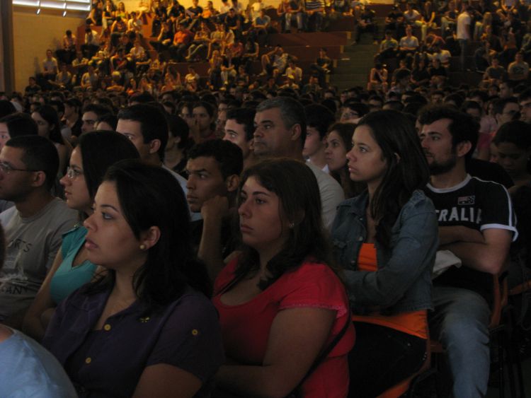 No domingo (25), os calouros de todos os cursos presenciais participaram de outro evento vinculado à recepção. Representantes de algumas pró-reitorias falaram sobre as suas pastas, a fim de deixar os ingressantes mais inteirados sobre as instâncias e atividades da UFLA.