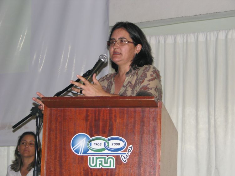 A professora Soraya Alvarenga Botelho, pró-reitora de Graduação, deu as boas-vindas e iniciou sua palestra falando sobre o câmpus e o crescimento de sua infraestrutura, explicando sobre suas instâncias. Ela abordou o Projeto Ambiental e orientou sobre a importância do uso do e-mail institucional, a legislação (pediu especial atenção à Resolução Cepe nº 42), a matriz curricular e as oportunidades de bolsas. O pró-reitor adjunto de Graduação, professor Marco Antônio Villarta Neder, falou, em seguida, sobre a implementação do Programa de Mentoria/Tutoria.