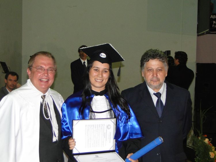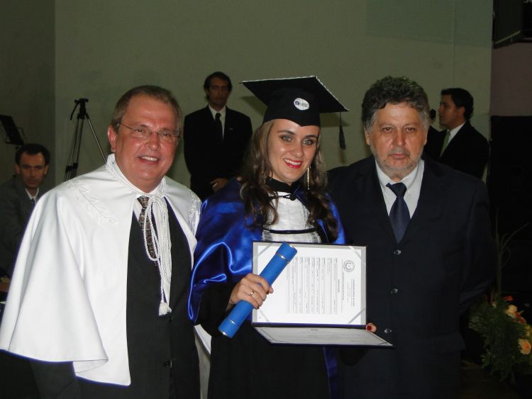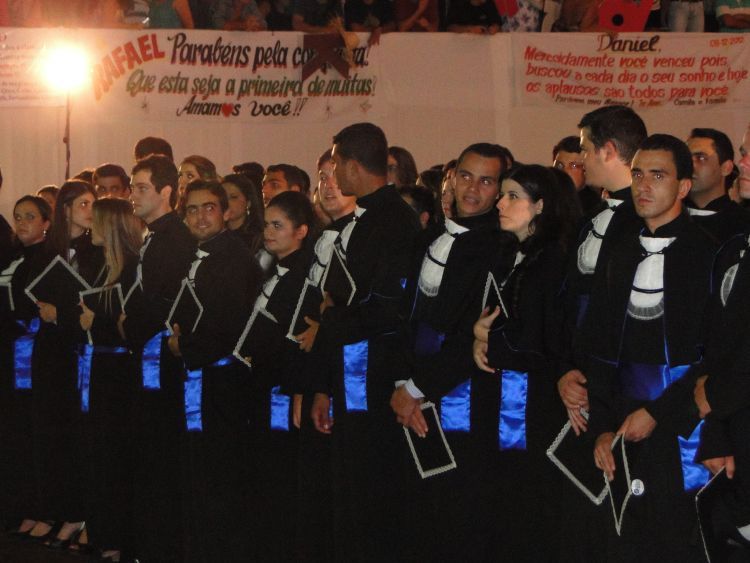 Entre os formandos da turma de Administração, Suluza Horário Absul Gafar, de Moçambique, finalizou a importante etapa de sua vida ao lado de amigos e familiares. Na cerimônia estavam presentes os símbolos de sua Pátria, a bandeira e o Hino de Moçambique.