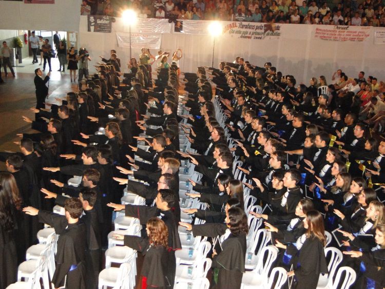 No pronunciamento para os formandos, na condição de paraninfo, o professor Scolforo proferiu palavras de otimismo, incentivando-os a buscarem sempre novos conhecimentos, evitarem a acomodação, terem perseverança, manterem-se atentos às exigências do mercado e a sempre honrarem o nome da Instituição.