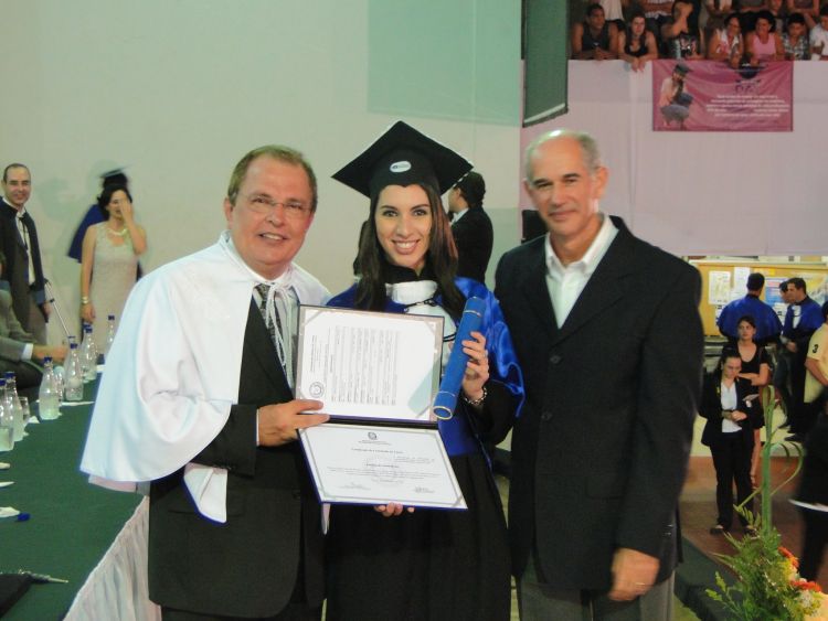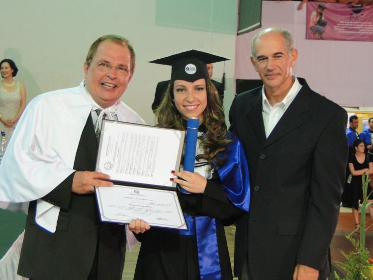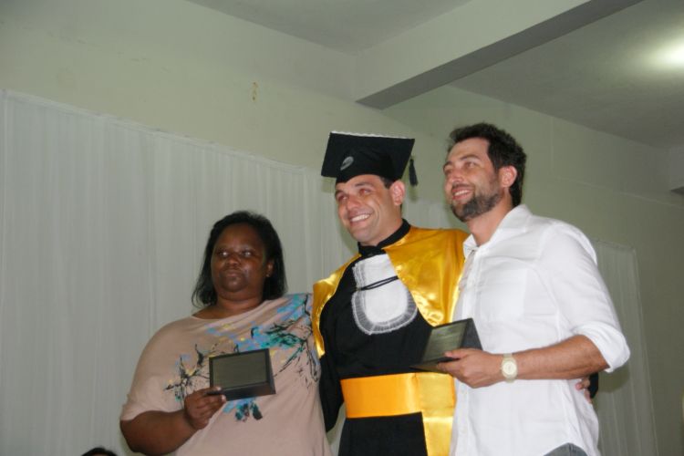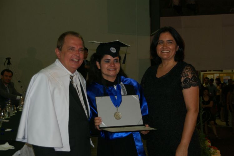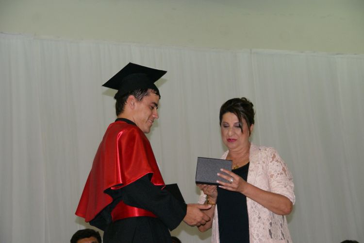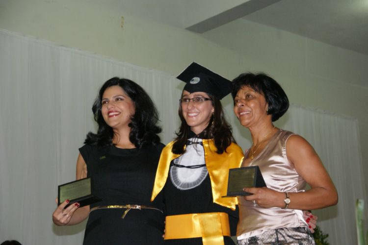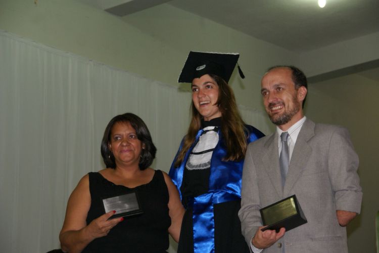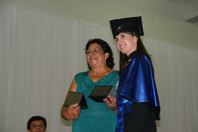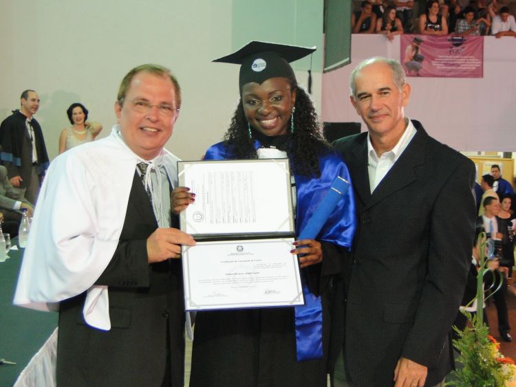 Entre os formandos da turma de Administração, Suluza Horário Absul Gafar, de Moçambique, finalizou a importante etapa de sua vida ao lado de amigos e familiares. Na cerimônia estavam presentes os símbolos de sua Pátria, a bandeira e o Hino de Moçambique.