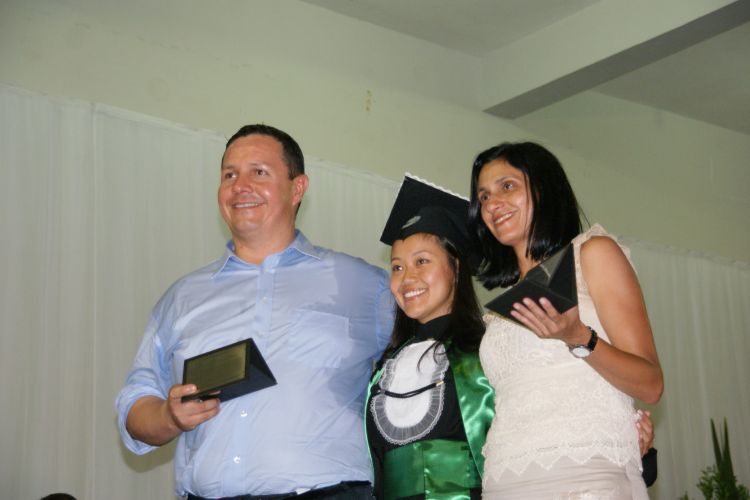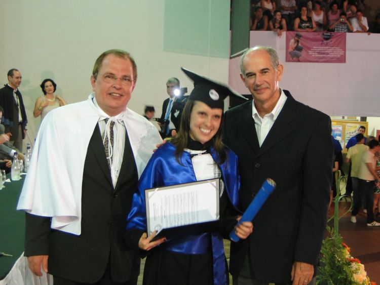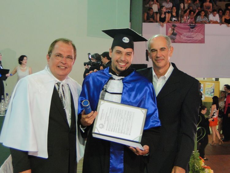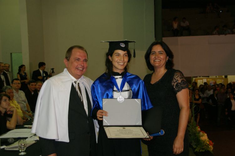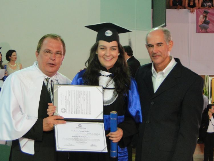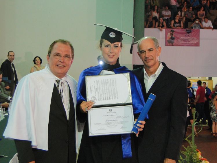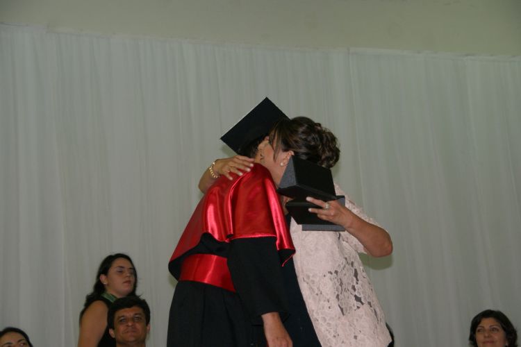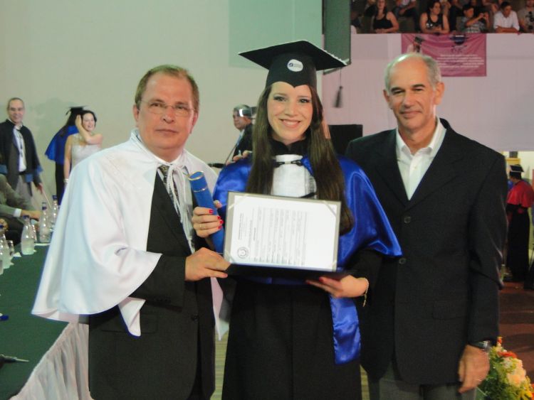 Entre os formandos da turma de Administração, Suluza Horário Absul Gafar, de Moçambique, finalizou a importante etapa de sua vida ao lado de amigos e familiares. Na cerimônia estavam presentes os símbolos de sua Pátria, a bandeira e o Hino de Moçambique.