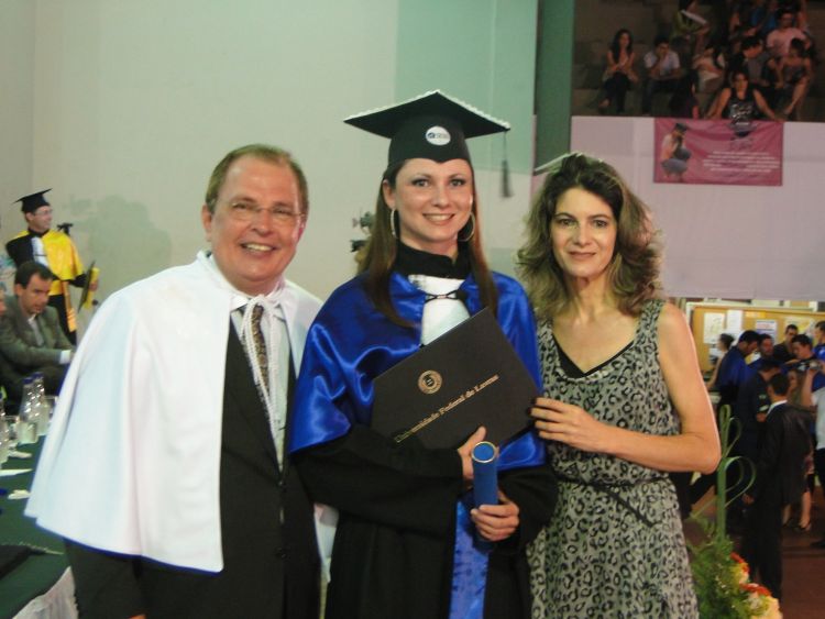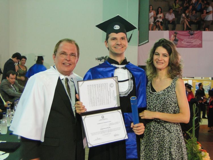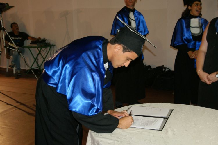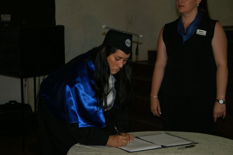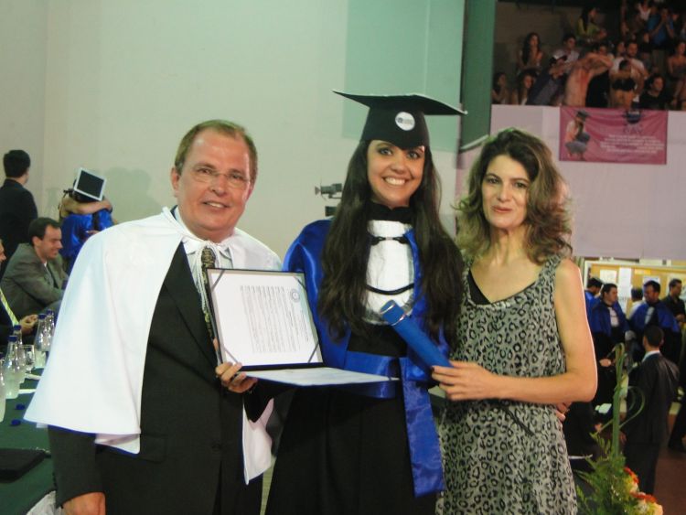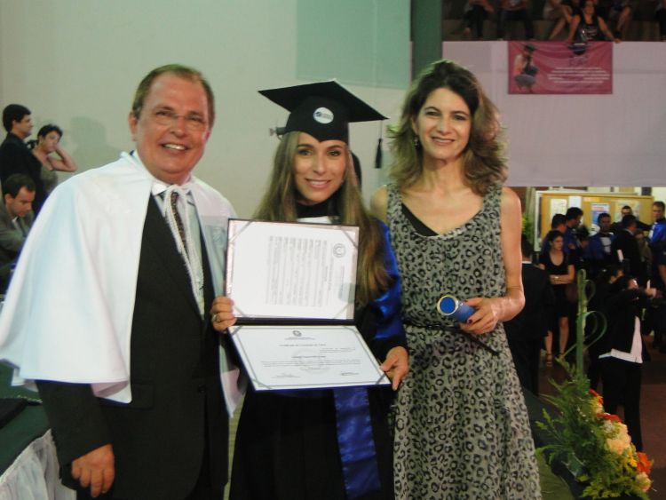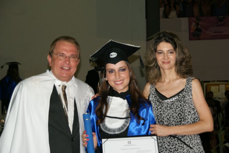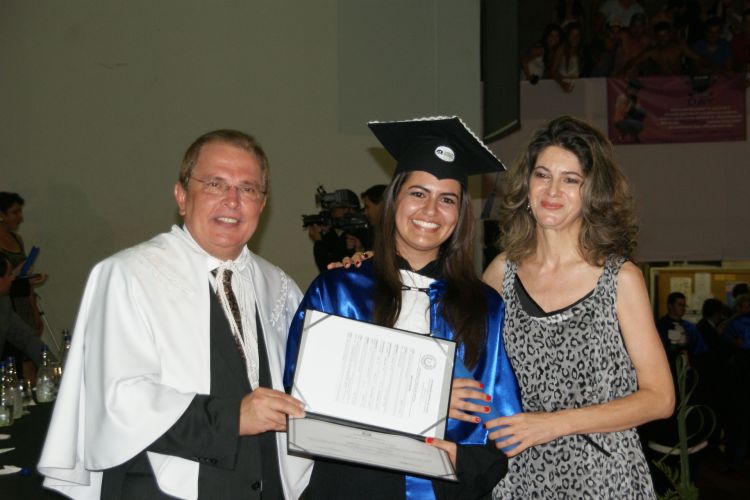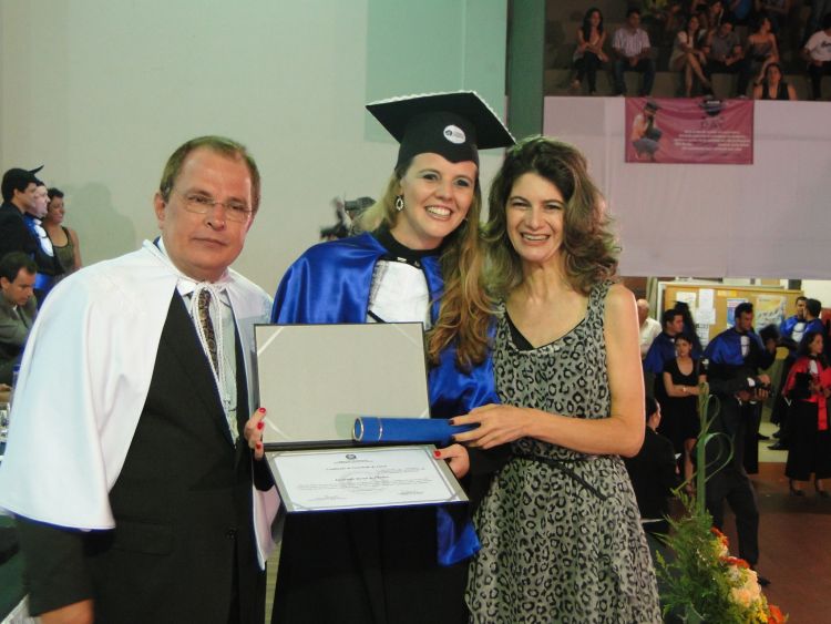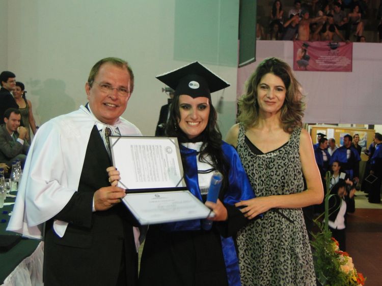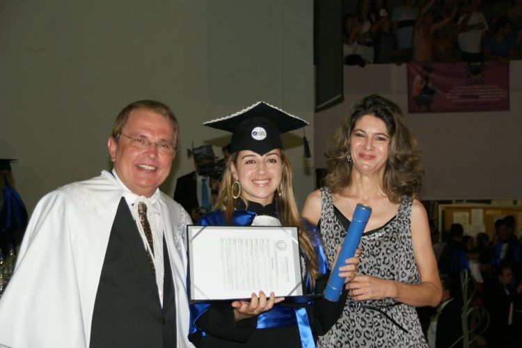 Entre os formandos da turma de Administração, Suluza Horário Absul Gafar, de Moçambique, finalizou a importante etapa de sua vida ao lado de amigos e familiares. Na cerimônia estavam presentes os símbolos de sua Pátria, a bandeira e o Hino de Moçambique.