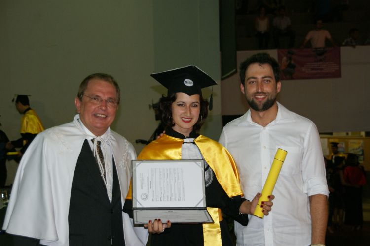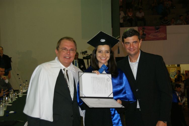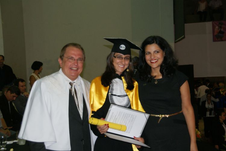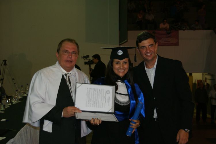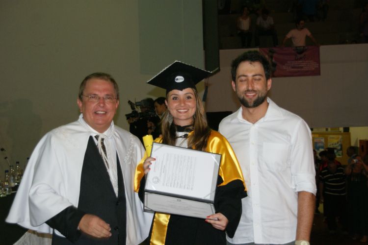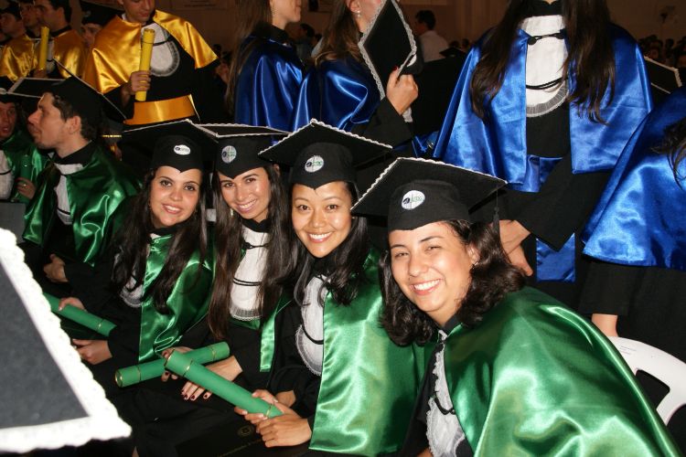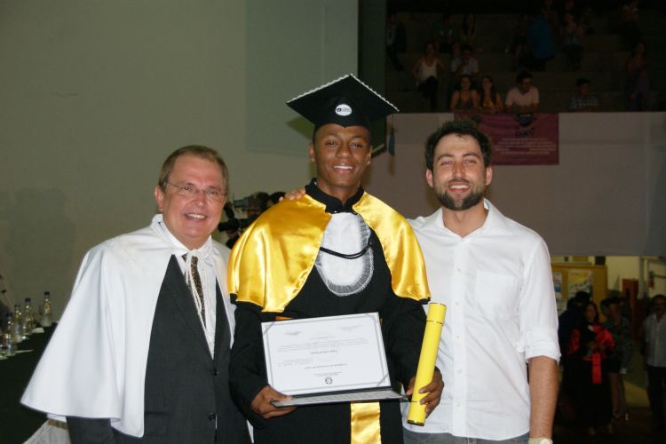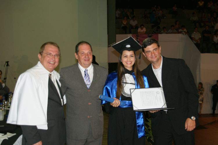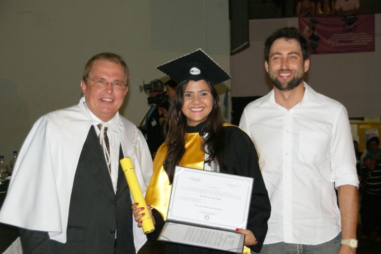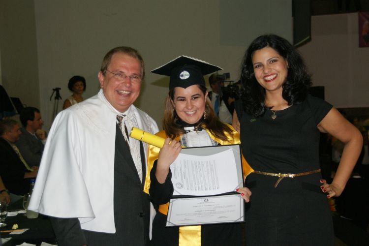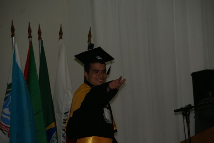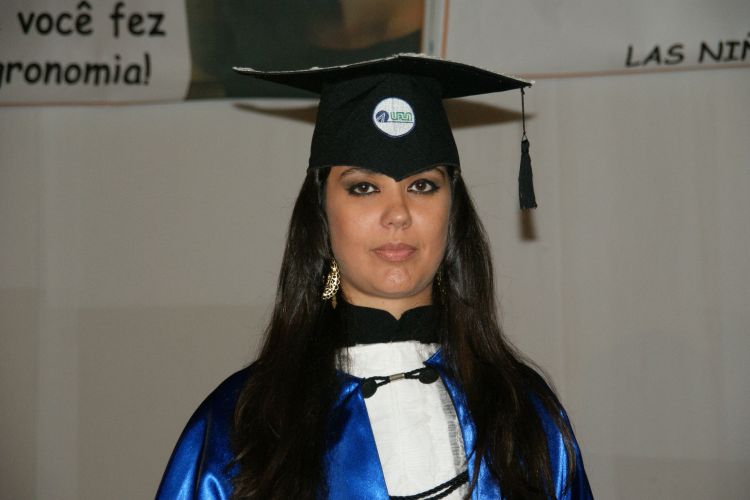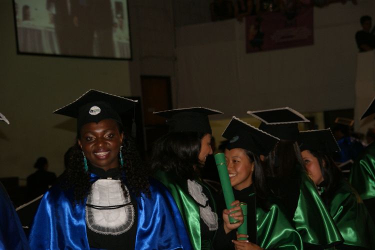 Entre os formandos da turma de Administração, Suluza Horário Absul Gafar, de Moçambique, finalizou a importante etapa de sua vida ao lado de amigos e familiares. Na cerimônia estavam presentes os símbolos de sua Pátria, a bandeira e o Hino de Moçambique.