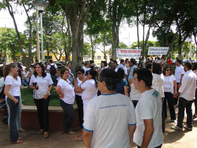 25.01 manifestação amauriServidores e estudantes da Universidade Federal de Lavras (UFLA) se reuniram na Cantina Central da Universidade, nessa quinta-feira (24), para uma manifestação em homenagem à memória do servidor assassinado Amauri Cléo Matos. Usando camiseta branca, os participantes levantaram a bandeira contra a violência e para a reflexão sobre a maioridade penal.
