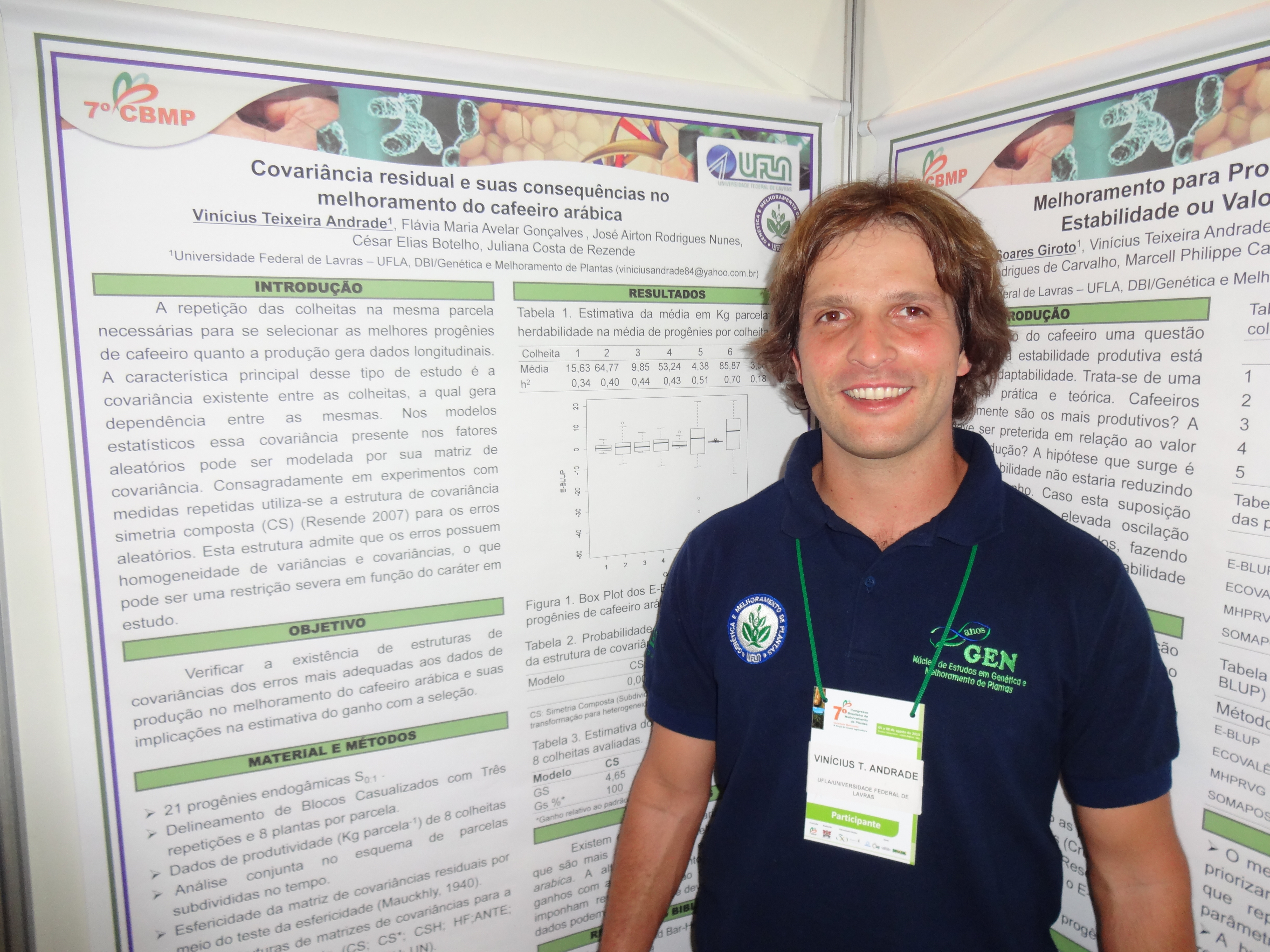 O artigo intitulado “Covariância residual e suas consequências no melhoramento do cafeeiro arábica”, que apresenta parte dos resultados da dissertação defendida na Universidade Federal de Lavras (UFLA), no âmbito do programa de pós-graduação em Genética e Melhoramento de Plantas, rendeu ao estudante Vinicius Teixeira Andrade o prêmio Jovem Melhorista -Categoria Mestrado. O prêmio foi outorgado pela Sociedade Brasileira de Melhoramento de Plantas, durante o 7º Congresso Brasileiro de Melhoramento de Plantas (CBMP), realizado de 5 a 8 de agosto de 2013, em Uberlândia.