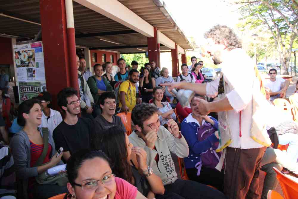 Este não foi o primeiro espetáculo apresentado na Cantina Central da Universidade Federal de Lavras (UFLA), mas talvez tenha sido o que mais chamou a atenção da comunidade acadêmica, incluindo os estudantes que ficaram com os olhos vidrados nas cenas trágico-cômicas da peça Dondeandar. O espetáculo foi encenado pela Companhia Teatral Manicômicos, de São João del-Rei, na sexta-feira (30/8), na programação da Semana de Ciência, Cultura e Arte, que comemora os 105 anos da Instituição.