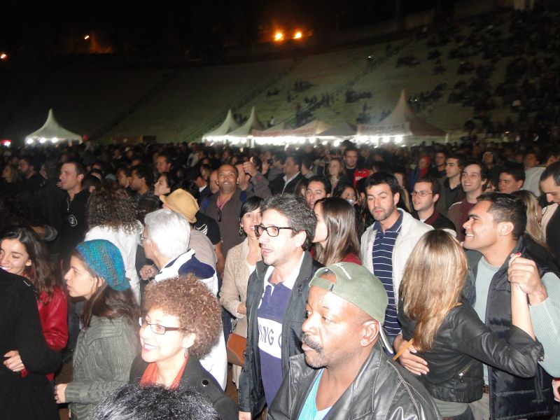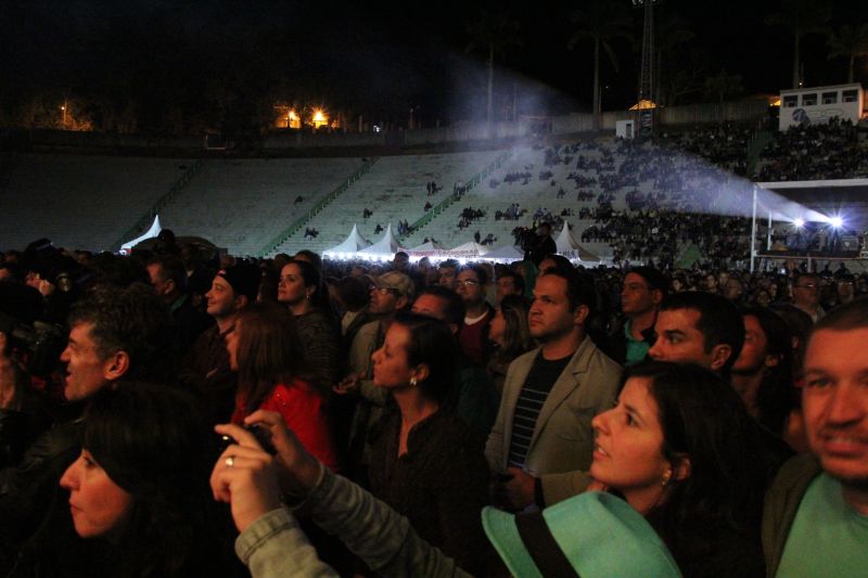 Durante o show, Gilberto Gil levantou não só a torcida do Flamengo, mas todas (inclusive do Cruzeiro e Atlético Mineiro), com uma energia contagiante: aos 71 anos, cantou, tocou guitarra e violão, dançou pelo palco e interagiu com o público.