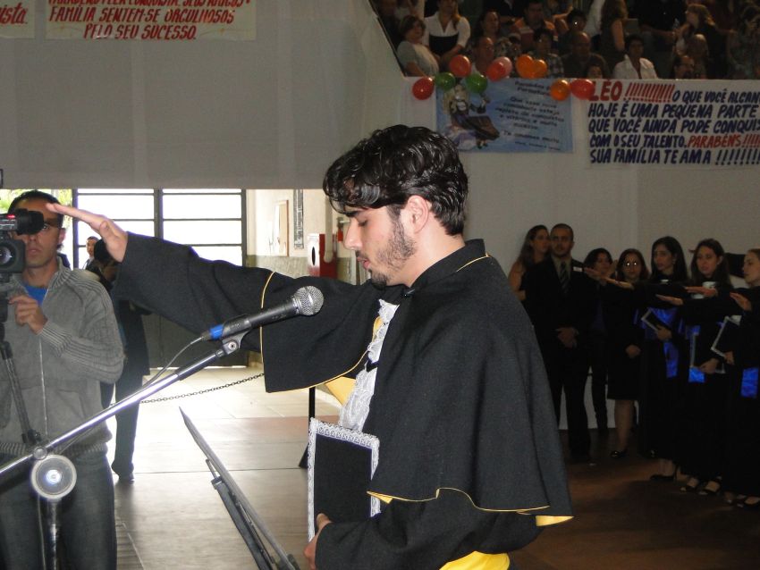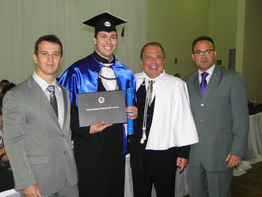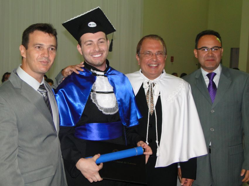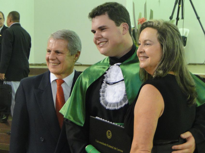 O reitor, professor Scolforo, proferiu palavras de otimismo, incentivando-os a evitarem o comodismo e a manterem-se atentos às exigências do mercado. Compartilhou com os formandos e familiares o orgulho de a UFLA estar classificada como uma das melhores instituições do País. Também fez referência ao crescimento contínuo e qualificado dos cursos ofertados e à certeza de a Universidade disponibilizar ao mercado profissionais tecnicamente qualificados e eticamente responsáveis com o desenvolvimento do País.