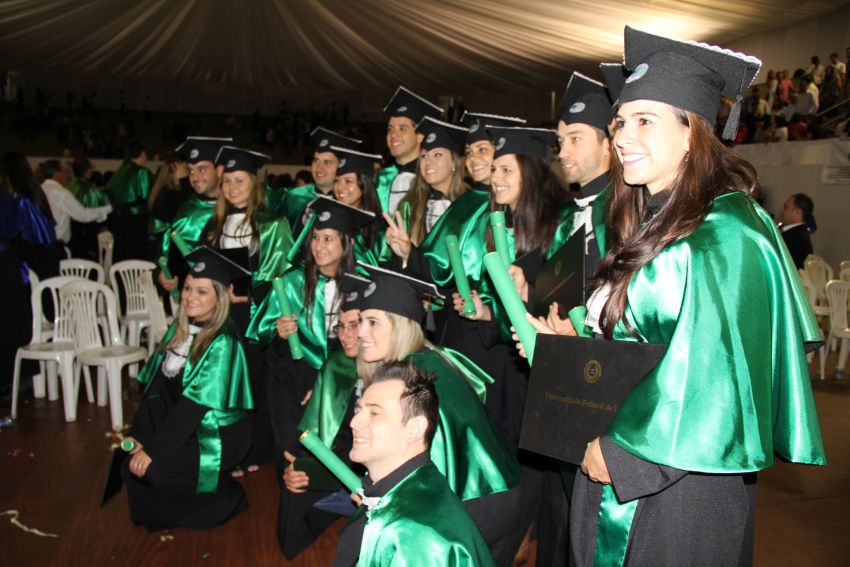 Na sexta-feira (4), familiares e amigos prestigiaram as sessões solenes de Colação de Grau de 16 cursos ofertados pela Universidade Federal de Lavras (UFLA). Receberam o diploma os estudantes dos cursos de Agronomia, Zootecnia, Engenharia Agrícola, Engenharia Florestal, Administração, Medicina Veterinária, Ciência da Computação, Engenharia de Alimentos, Química (Licenciatura), Ciências Biológicas (Licenciatura), Sistemas de Informação, Matemática (Licenciatura), Educação Física (Licenciatura), Educação Física (Bacharelado), Física (Licenciatura) e Ciências Biológicas (Bacharelado).