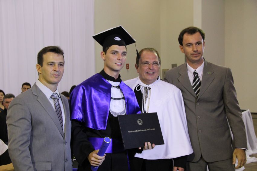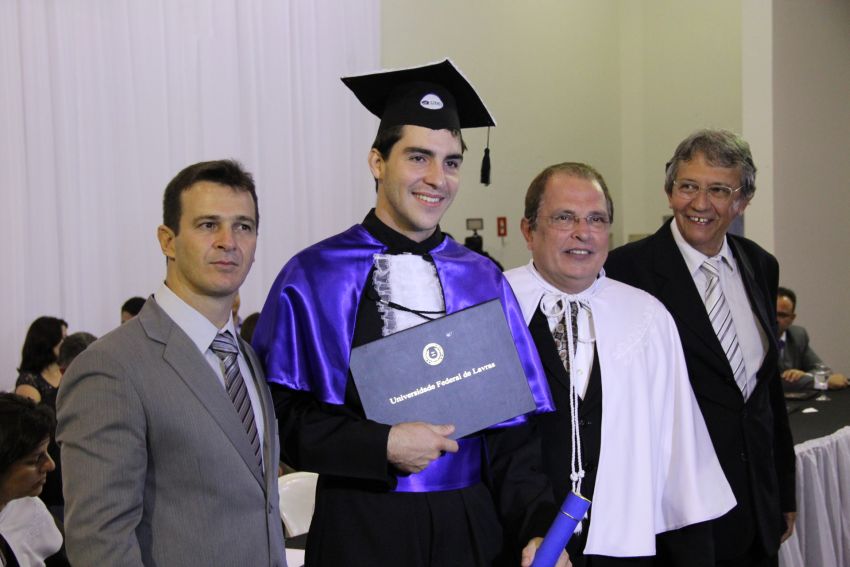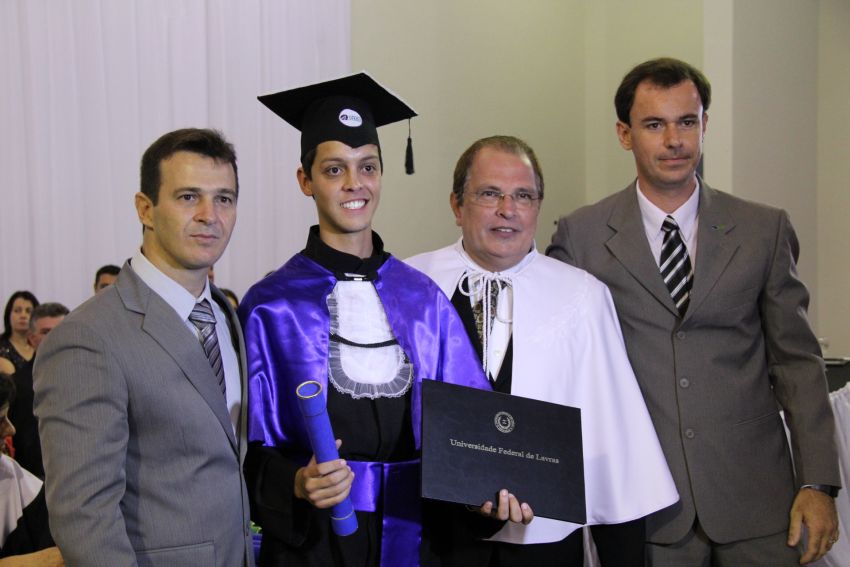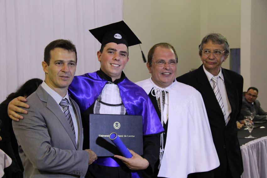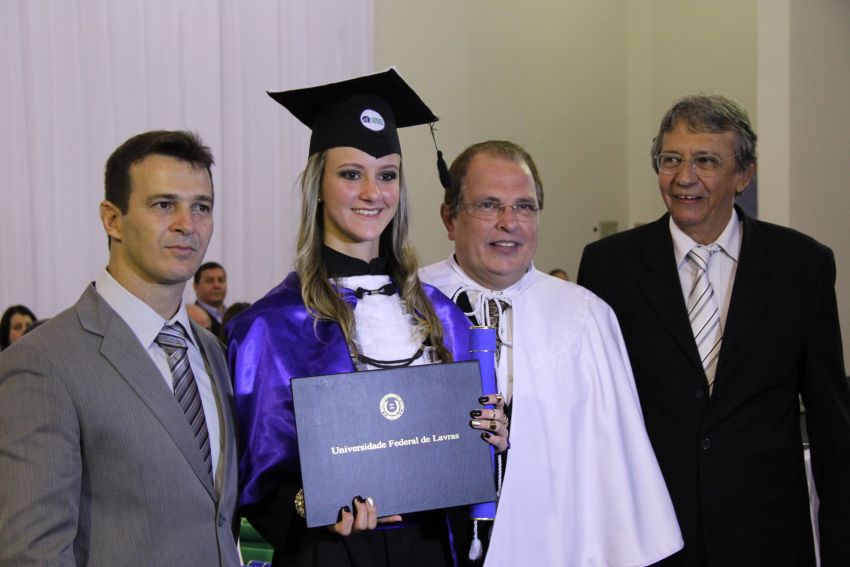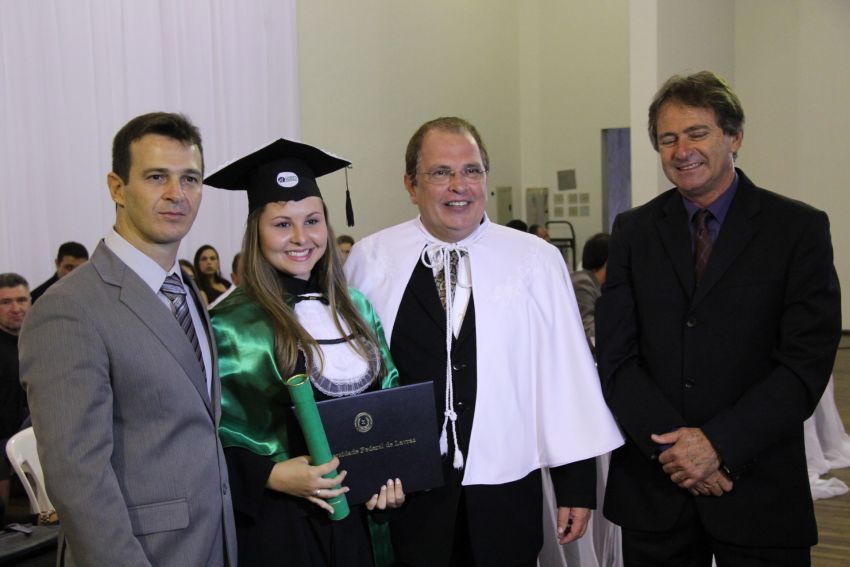 O reitor, professor Scolforo, proferiu palavras de otimismo, incentivando-os a evitarem o comodismo e a manterem-se atentos às exigências do mercado. Compartilhou com os formandos e familiares o orgulho de a UFLA estar classificada como uma das melhores instituições do País. Também fez referência ao crescimento contínuo e qualificado dos cursos ofertados e à certeza de a Universidade disponibilizar ao mercado profissionais tecnicamente qualificados e eticamente responsáveis com o desenvolvimento do País.
