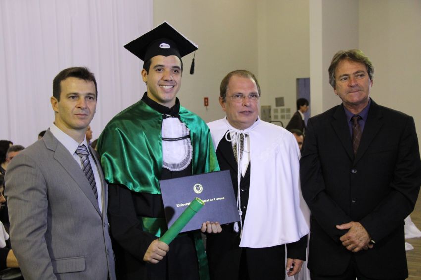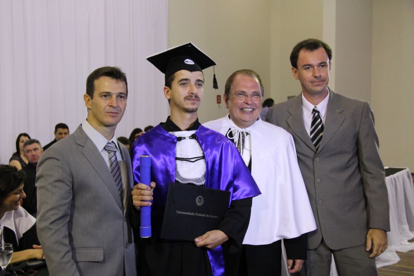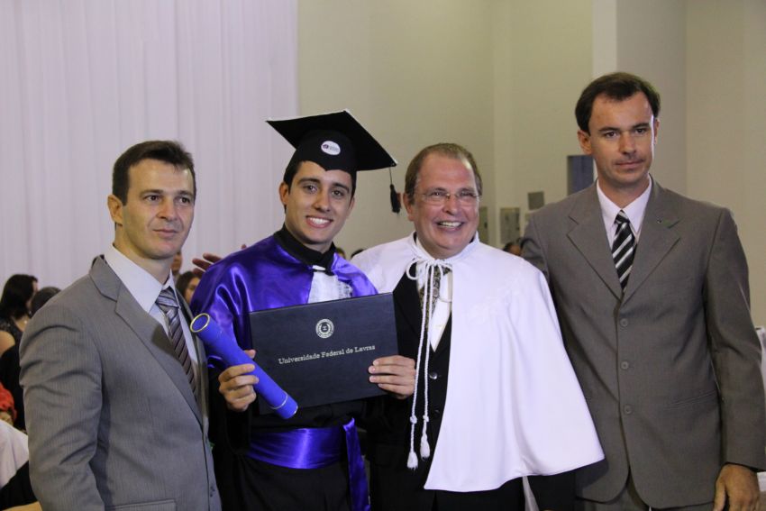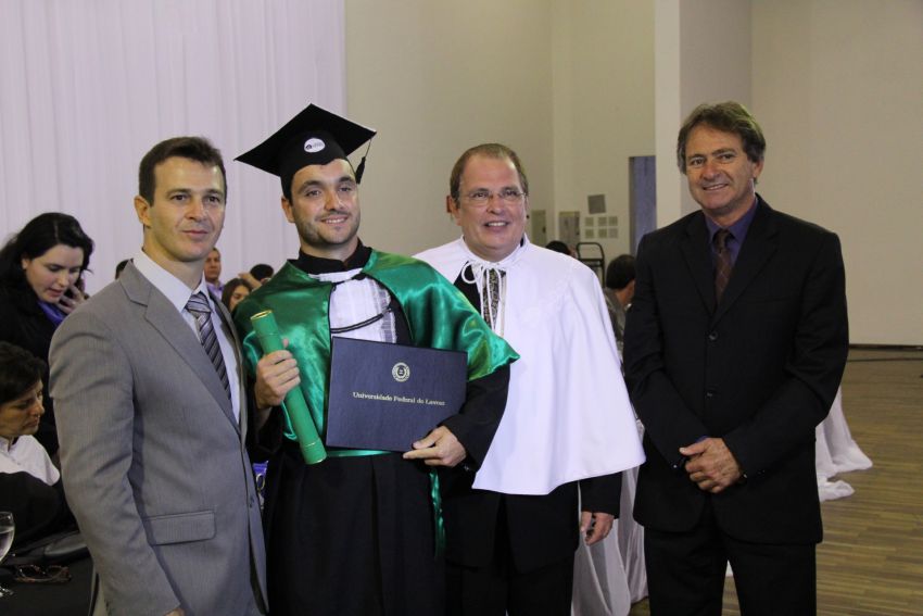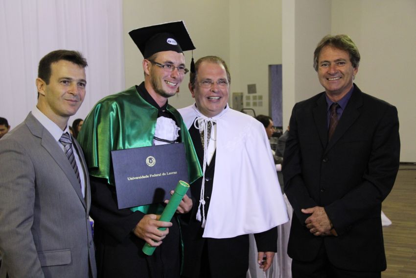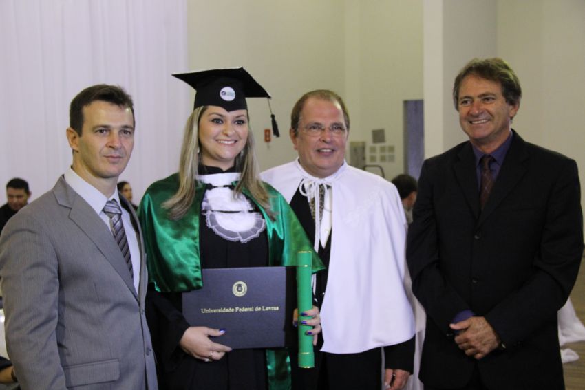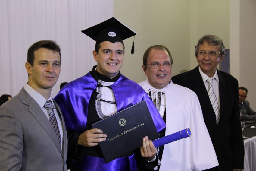 O reitor, professor Scolforo, proferiu palavras de otimismo, incentivando-os a evitarem o comodismo e a manterem-se atentos às exigências do mercado. Compartilhou com os formandos e familiares o orgulho de a UFLA estar classificada como uma das melhores instituições do País. Também fez referência ao crescimento contínuo e qualificado dos cursos ofertados e à certeza de a Universidade disponibilizar ao mercado profissionais tecnicamente qualificados e eticamente responsáveis com o desenvolvimento do País.