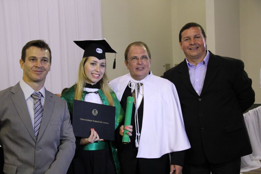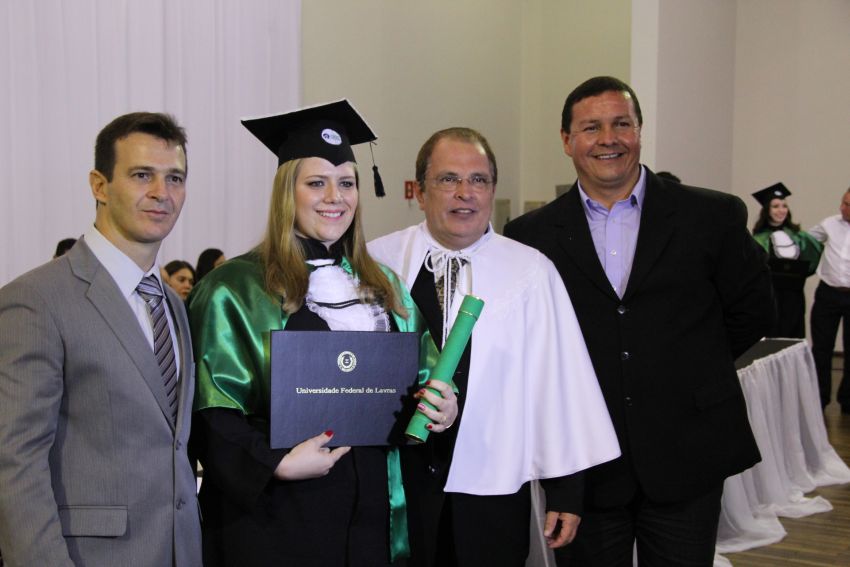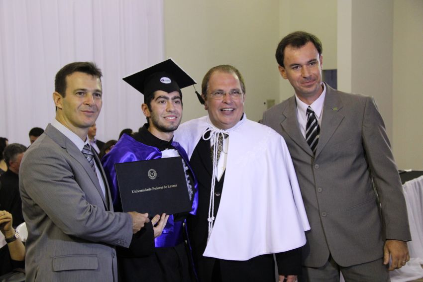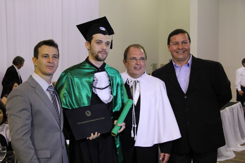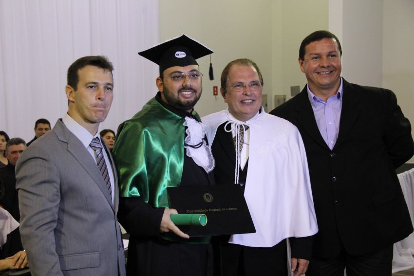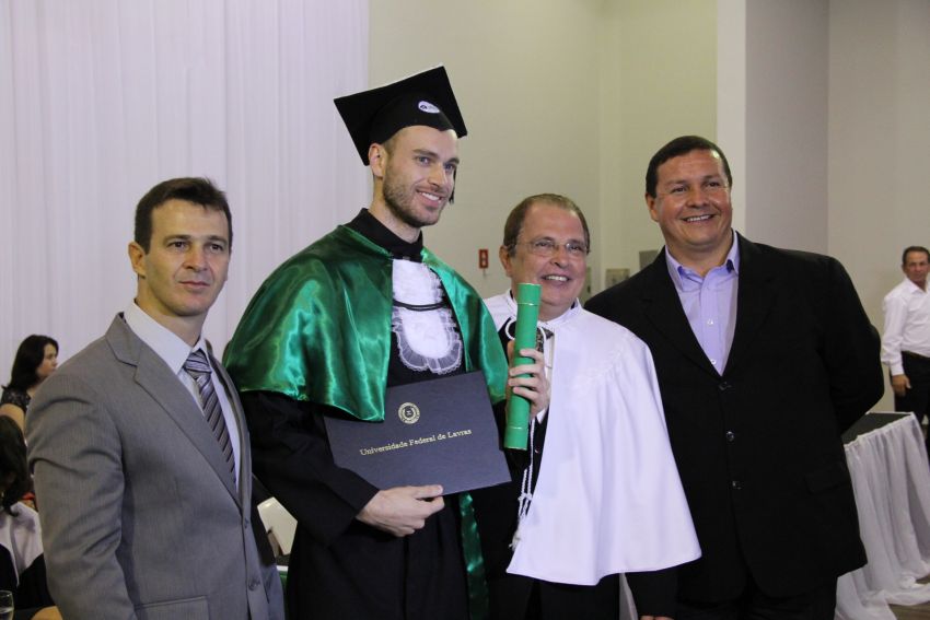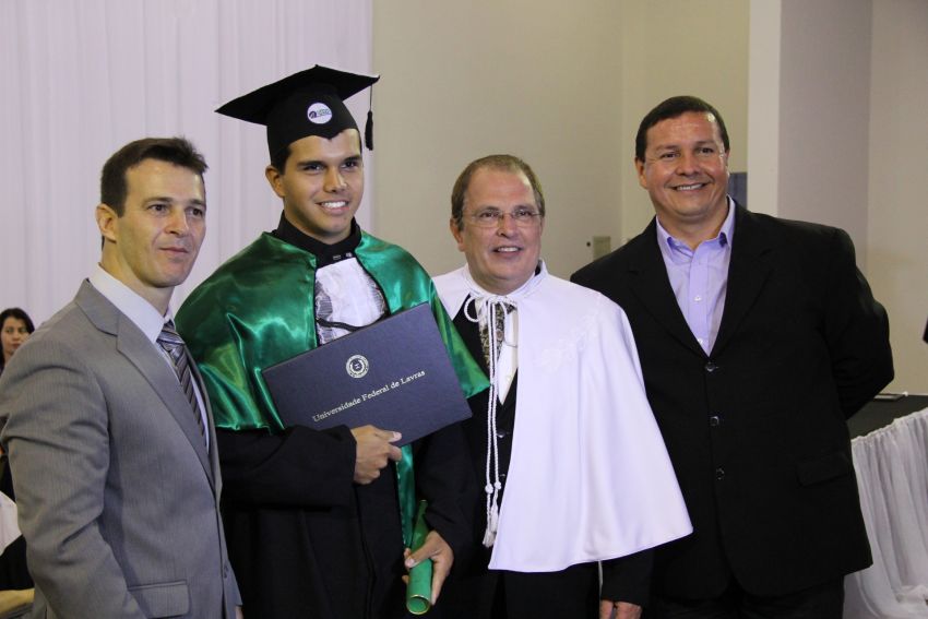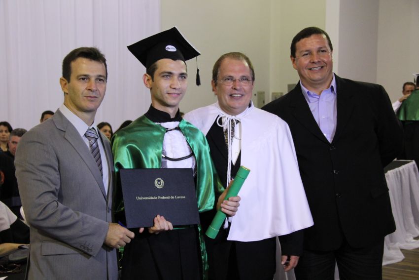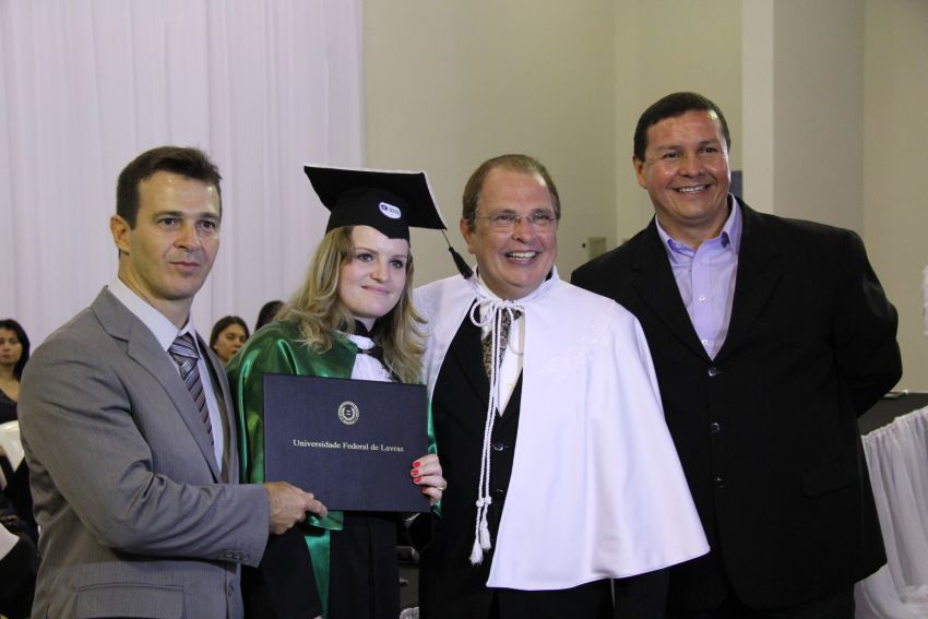 O reitor, professor Scolforo, proferiu palavras de otimismo, incentivando-os a evitarem o comodismo e a manterem-se atentos às exigências do mercado. Compartilhou com os formandos e familiares o orgulho de a UFLA estar classificada como uma das melhores instituições do País. Também fez referência ao crescimento contínuo e qualificado dos cursos ofertados e à certeza de a Universidade disponibilizar ao mercado profissionais tecnicamente qualificados e eticamente responsáveis com o desenvolvimento do País.