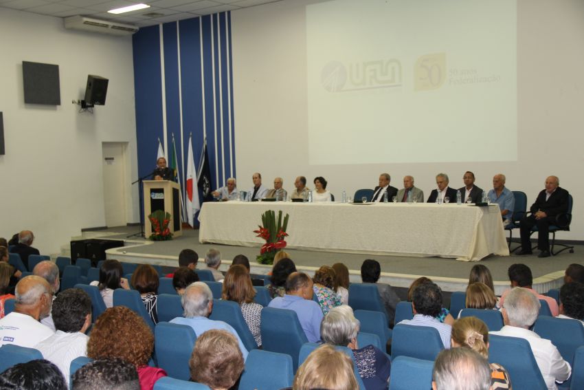 IMG_1772A UFLA comemora, nesta semana, os 50 anos de Federalização da ESAL – fato marcado pela intensa luta da comunidade acadêmica em relação a uma crise administrativa e pela decisão de emissários do MEC em não fechar a Escola. A abertura desta semana comemorativa, com justas homenagens às personagens responsáveis pela Federalização, ocorreu no Salão de Convenções, no dia 3.