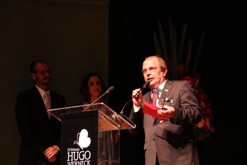 IMG_3014A edição 2013 do Prêmio Hugo Werneck, um dos mais importantes da área de ecologia no Brasil, ocorreu na noite de 9/12, em Belo Horizonte. A ministra do Meio Ambiente, Izabella Teixeira, e o governador de Minas Gerais, Antonio Anastasia, participaram da solenidade. A UFLA teve dois projetos indicados ao prêmio: Inventário Florestal UFLA/IEF (categoria melhor exemplo em flora) e Projeto Malha/ Centro Brasileiro de Estudos em Ecologia de Estradas (categoria melhor exemplo em fauna).