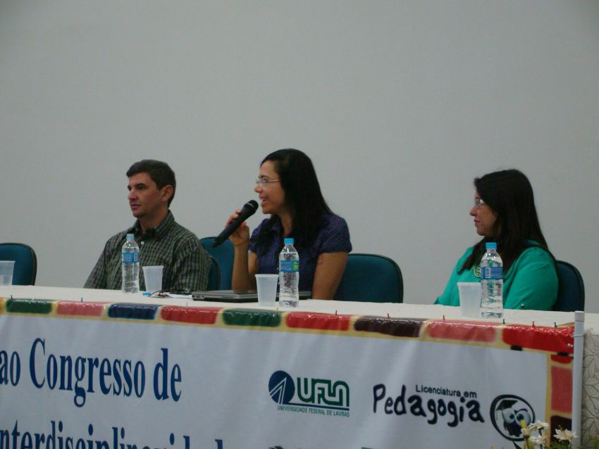 Durante a mesa-redonda, com a participação das docentes Madeleine Queiroz; da, Helena Maria Ferreira (coordenadora do curso de Letras da UFLA) e Lívia Monique de Castro Faria (colaboradora do curso de Pedagogia – CEAD/UFLA), foram expostos temas relacionados à formação do professor e à aplicação de práticas interdisciplinares no ensino.