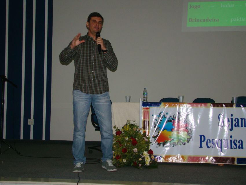 Professor de disciplinas pedagógicas e de fundamentação, Fábio dos Reis falou sobre “Teoria do jogo/brincadeira na formação docente: Aproximações com trabalho interdisciplinar na escola”. Segundo ele, os jogos devem ser adaptados à faixa etária das crianças, fazendo com que passem a gostar de tais atividades, citando como exemplo o vôlei: “Se a rede estiver muito alta a criança não vai conseguir jogar. Por isso, é necessário haver uma adaptação”, disse.
