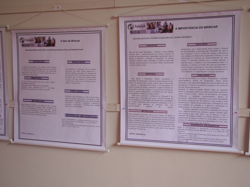 O Congresso de Pesquisa em Educação e Interdisciplinaridade foi realizado no último sábado (22), na Universidade Federal de Lavras. Os presentes tiveram a oportunidade de conhecer métodos pedagógicos a serem aplicados no Ensino Básico; viram uma exposição de pôsteres da disciplina Seminário de Pesquisa e Educação III e portfólios elaborados nas aulas de Avaliação do Desenvolvimento da Criança; e participaram de minicursos. O evento foi realizado pelo Centro de Educação a Distância (CEAD), curso de Pedagogia e Laboratório Interdisciplinar de Formação de Educadores (LIFE).