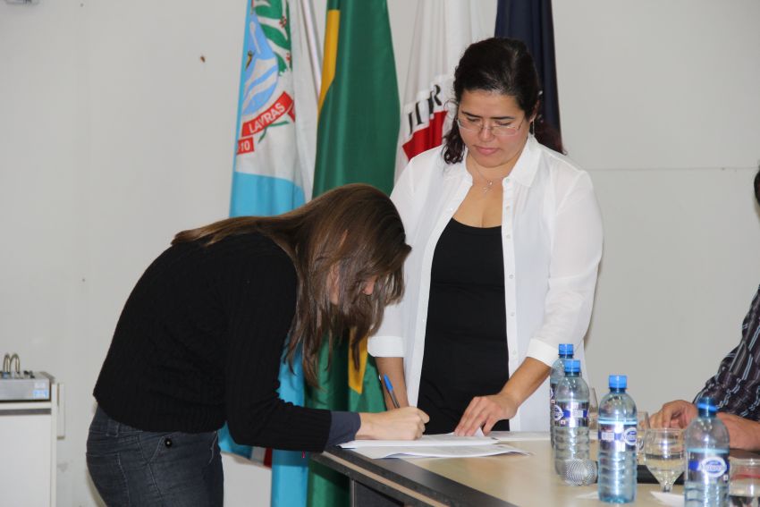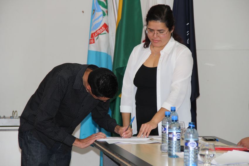 A solenidade teve na composição da mesa de honra o reitor da UFLA, professor José Roberto Scolforo; a pró-reitora de Gestão e Desenvolvimento de Pessoas, Valéria da Glória Pereira Brito; o diretor de Desenvolvimento de Pessoas, Georges Francisco Vilela Zouein; o membro da Comissão de Ética professor Luiz Henrique Rezende Maciel; a representante da Seção Sindical dos Docentes da UFLA (Adufla) professora Amanda Castro Oliveira; o presidente do Sindicato dos Servidores da UFLA (Sind-UFLA), César Raimundo da Silva; o membro da Comissão Permanente de Pessoal Docente (CPPD) professor Adriano Teodoro Bruzi e o representante da Comissão Interna de Supervisão do Plano de Carreira dos cargos técnico-administrativos (Cista) Hugo César Tadeu. Depois da leitura do Termo de Compromisso Ético e do Termo de Posse, os novos servidores assinaram a documentação.