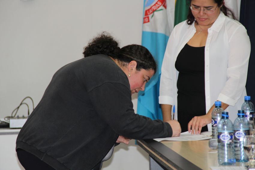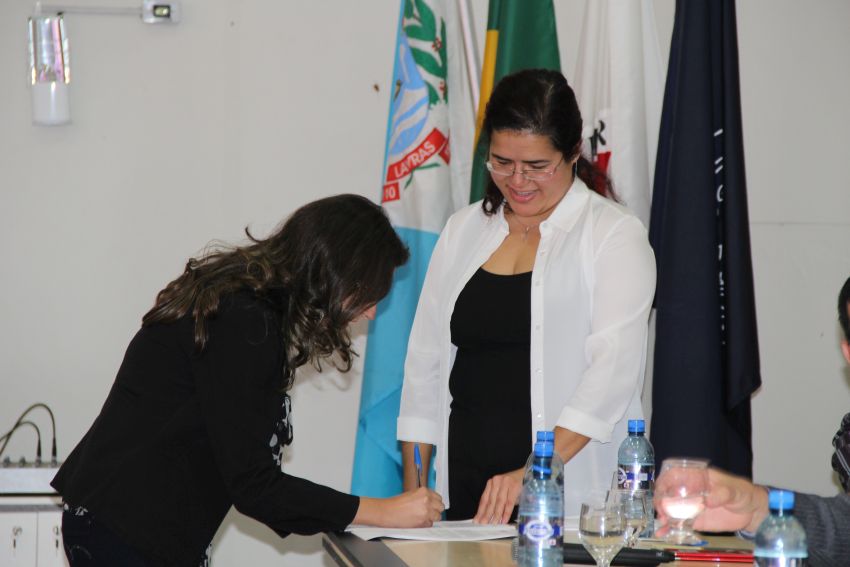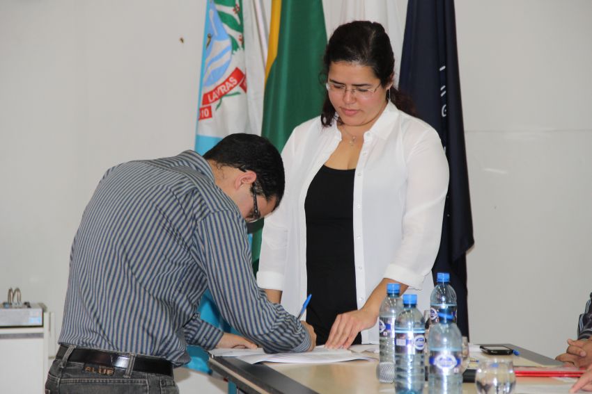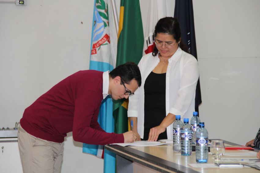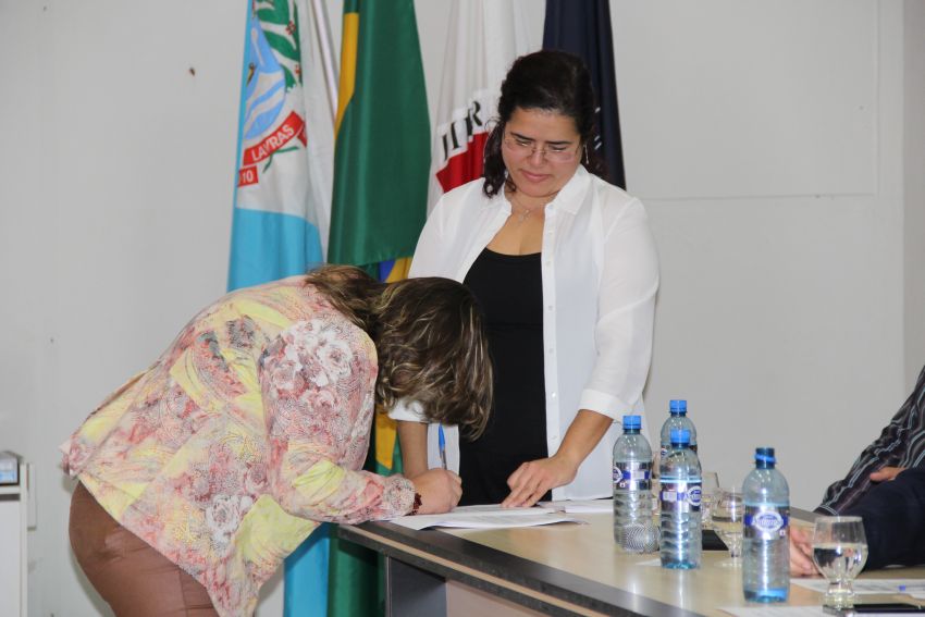 A solenidade teve na composição da mesa de honra o reitor da UFLA, professor José Roberto Scolforo; a pró-reitora de Gestão e Desenvolvimento de Pessoas, Valéria da Glória Pereira Brito; o diretor de Desenvolvimento de Pessoas, Georges Francisco Vilela Zouein; o membro da Comissão de Ética professor Luiz Henrique Rezende Maciel; a representante da Seção Sindical dos Docentes da UFLA (Adufla) professora Amanda Castro Oliveira; o presidente do Sindicato dos Servidores da UFLA (Sind-UFLA), César Raimundo da Silva; o membro da Comissão Permanente de Pessoal Docente (CPPD) professor Adriano Teodoro Bruzi e o representante da Comissão Interna de Supervisão do Plano de Carreira dos cargos técnico-administrativos (Cista) Hugo César Tadeu. Depois da leitura do Termo de Compromisso Ético e do Termo de Posse, os novos servidores assinaram a documentação.
