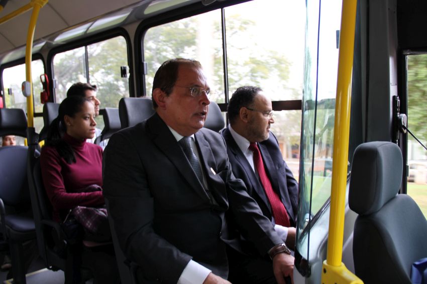 Pela primeira vez na Universidade, o ministro Henrique Paim elogiou as estruturas do câmpus, as áreas verdes e as novas construções. Assim que chegou, o ministro e sua equipe fizeram uma parada na Portaria Principal e subiram para o câmpus novo no ônibus articulado, que começa a circular para otimizar o transporte de estudantes.