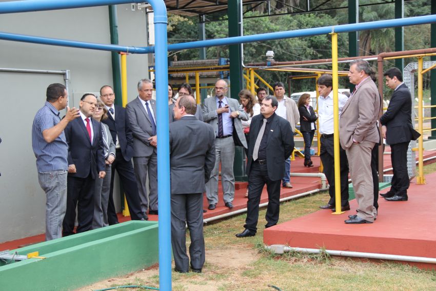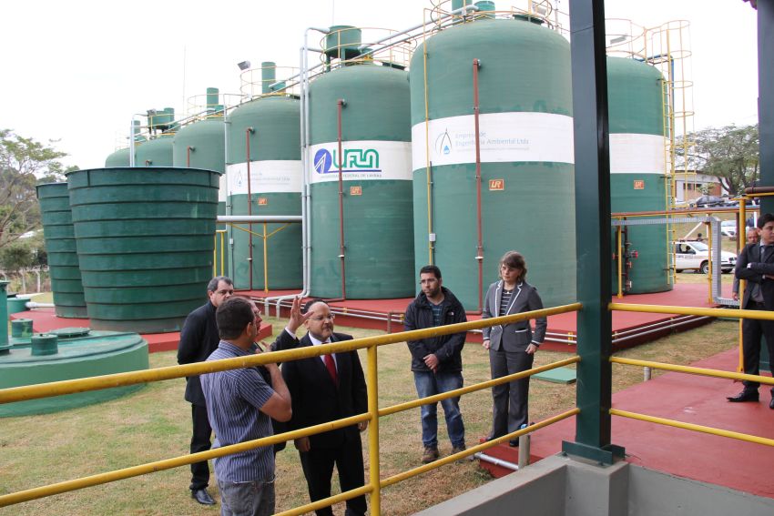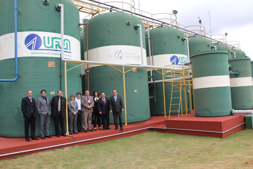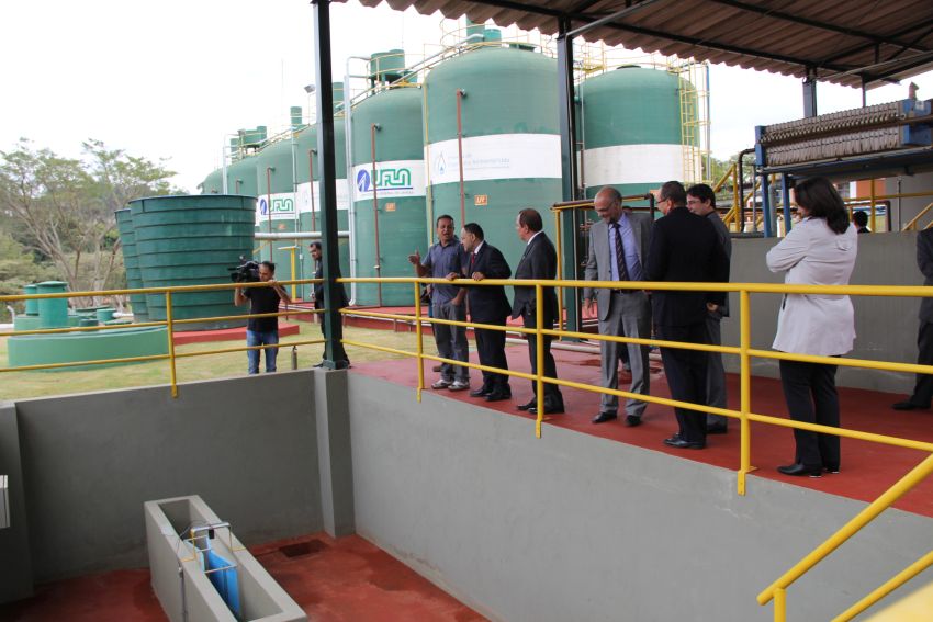 O ministro e sua equipe visitaram a Estação de Tratamento de Esgoto (ETE/UFLA), espaço escolhido para simbolizar a consolidação do Plano Ambiental, que distingue a UFLA como uma das instituições mais comprometidas com as causas ambientais, tanto em rankings nacionais como internacionais de sustentabilidade. A estrutura da ETE/UFLA abriga um sistema moderno e eficiente de tratamento de esgoto, que pode servir de exemplo para outras instituições e municípios.