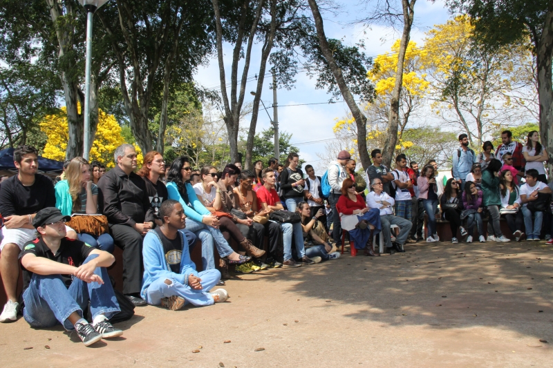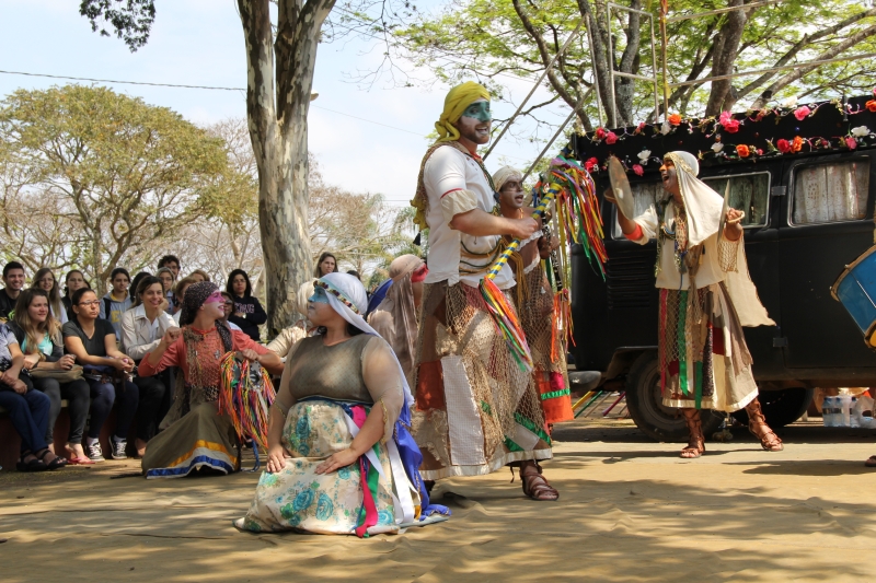 Na sexta-feira (29), a Trupe Ventania, grupo teatral de Passos, chamou a atenção e agradou o público na Cantina Central com a peça Auto da Folia. A apresentação faz parte da Semana de Ciência, Cultura e Arte, que celebra os 106 anos da Instituição. A programação cultural tem o apoio e organização da Pró-Reitoria de Extensão e Cultura – Coordenadoria de Cultura.