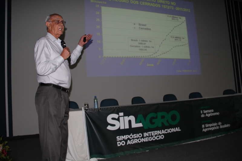 O professor Aldredo Lopes, homenageado pelo pioneirismo em desenvolver tecnologias para produção de alimentos em solo de cerrado, desmistificou alguns mitos que persistem no imaginário brasileiro e também sobre o perigo do marketing enganoso. Entre eles, informou que o agronegócio foi responsável por uma involução dos preços reais da cesta de produtos alimentícios básicos, o que significa um custo menor, hoje, comparado aos preços dos produtos em 1975.