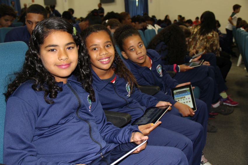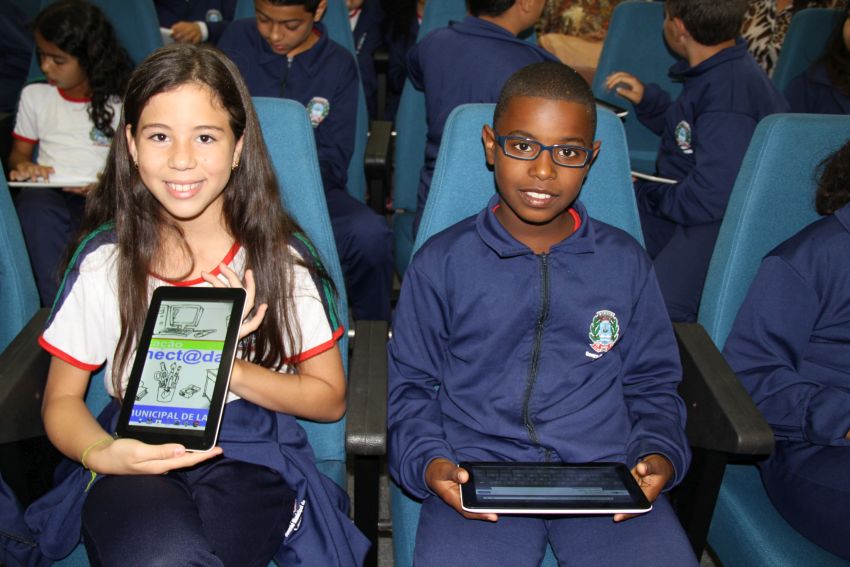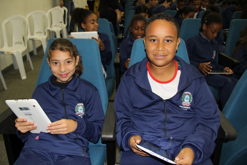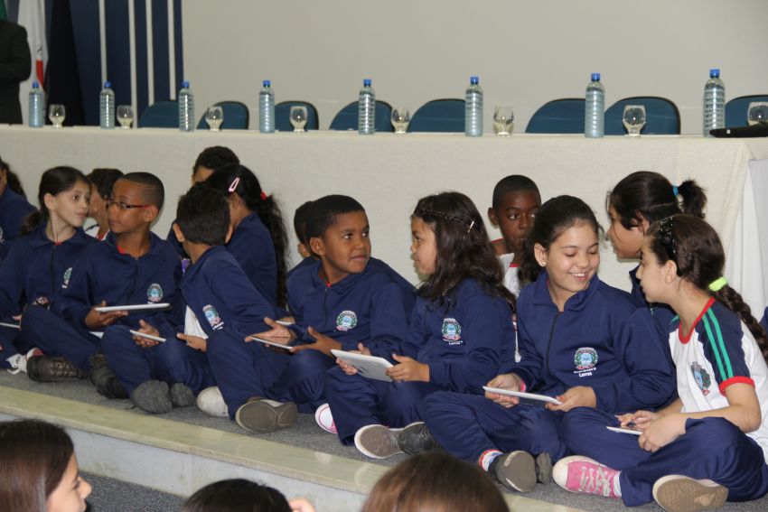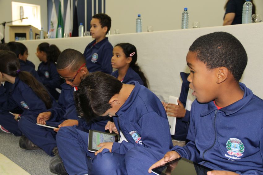 agradecer a todos que acreditaram no “Educação Conectada” e colaboraram com sua implementação. Ela destacou que, pelo fácil manuseio observado entre os alunos no momento em que receberam os tablets, foi possível perceber que não haverá dificuldades em lidarem com a tecnologia. O presidente da Câmara disse aos pequenos estudantes que poucas crianças no Brasil têm hoje a oportunidade de usufruir dessa tecnologia no ambiente escolar. “Somente por meio da educação teremos um futuro melhor para esta cidade”.