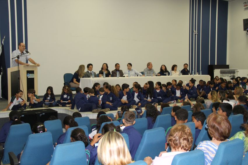 O Salão de Convenções da Universidade Federal de Lavras (UFLA) acolheu um público diferente na manhã desta sexta-feira (12/9): quase quinhentas crianças da rede municipal de ensino. Como olhos atentos e fixos na tela dos tablets que receberam no local, elas participaram do lançamento do projeto Educação Conectada, desenvolvido por uma parceria entre a UFLA e a prefeitura de Lavras.