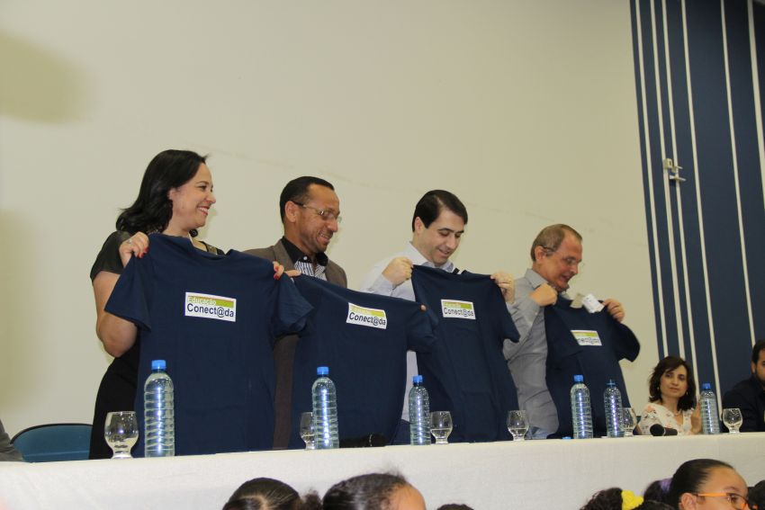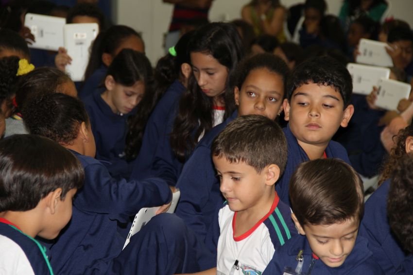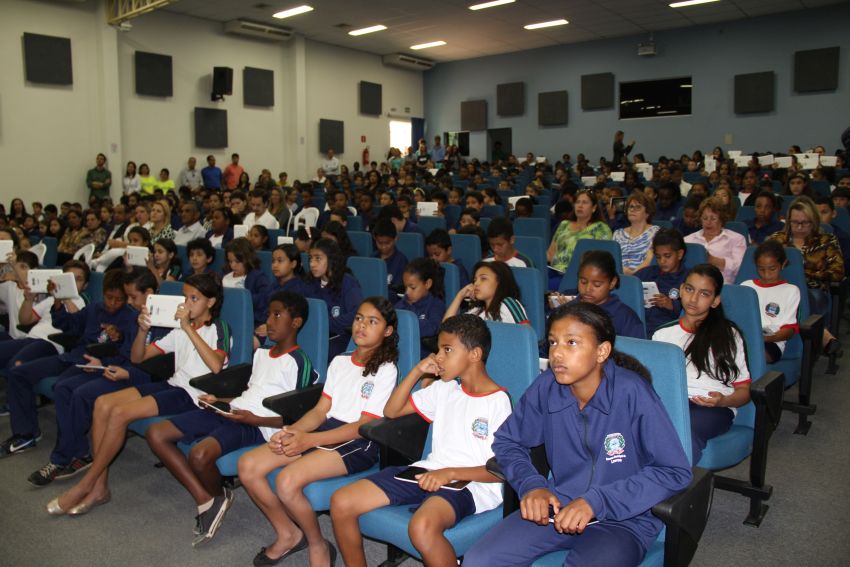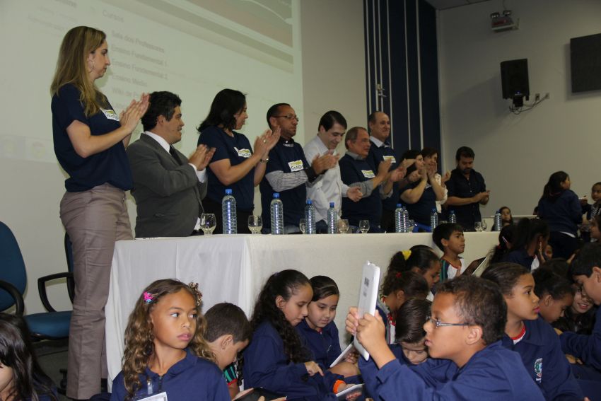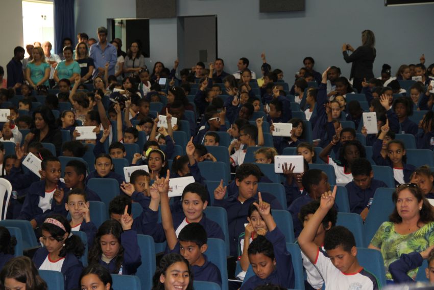 agradecer a todos que acreditaram no “Educação Conectada” e colaboraram com sua implementação. Ela destacou que, pelo fácil manuseio observado entre os alunos no momento em que receberam os tablets, foi possível perceber que não haverá dificuldades em lidarem com a tecnologia. O presidente da Câmara disse aos pequenos estudantes que poucas crianças no Brasil têm hoje a oportunidade de usufruir dessa tecnologia no ambiente escolar. “Somente por meio da educação teremos um futuro melhor para esta cidade”.