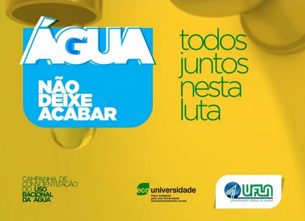 A Universidade Federal de Lavras (UFLA) lançou nessa terça-feira (7/10), por meio da Diretoria de Meio Ambiente (DMA), a campanha “Água: não deixe acabar”. O objetivo é mobilizar a comunidade acadêmica para a economia de água, de forma a garantir que o abastecimento no câmpus esteja assegurado até o final do período letivo. Busca-se a colaboração de todos para que – mesmo que a estiagem se prolongue – fique afastada qualquer necessidade de alteração no calendário de aulas em decorrência de possíveis períodos de falta de água.