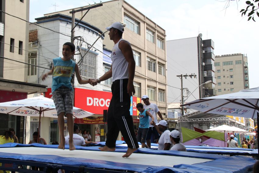 Na manhã desse domingo (19/10), a comemoração dos 15 anos da TV Universitária (TVU) atraiu as crianças de Lavras. Quem passou Praça Leonardo Venerando Pereira (antiga Praça da Bandeira, no Centro) encontrou meninos e meninas com pinturas nos braços, dando saltos nas camas elásticas, disputando espaço nos brinquedos infláveis e exercitando a criatividade na montagem de bijuterias. A Rua de Lazer, montada no local, ofereceu também aos bebês uma área de brinquedos própria para eles.