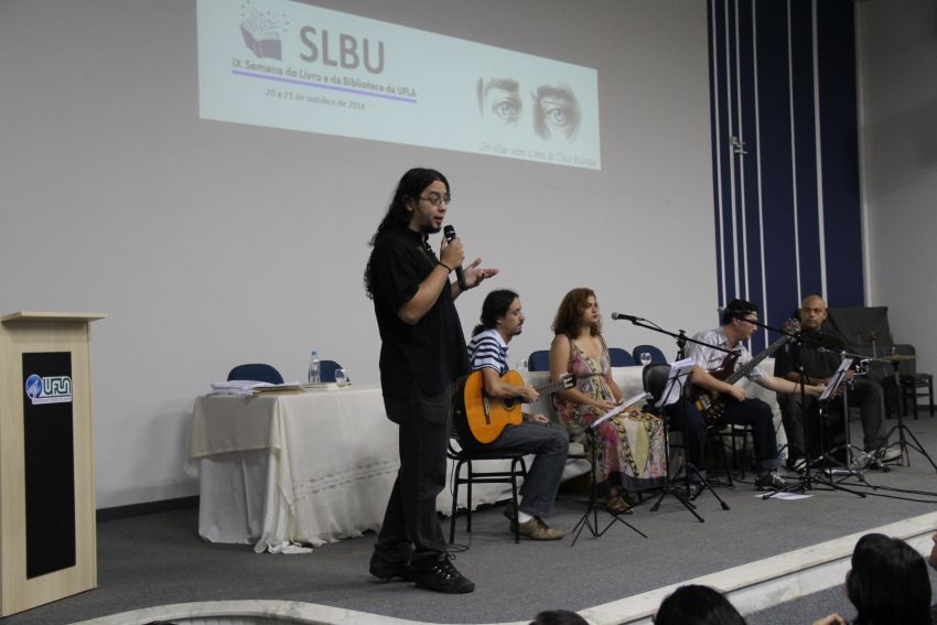 Estudantes e servidores da UFLA que foram ao lançamento da IX Semana do Livro e da Biblioteca da UFLA, ontem, no Salão de Convenções, prestigiaram uma aula-show que apresentou um pouco da obra de Chico Buarque. O artista completou 70 anos em 2014 e é o homenageado desta edição da Semana.