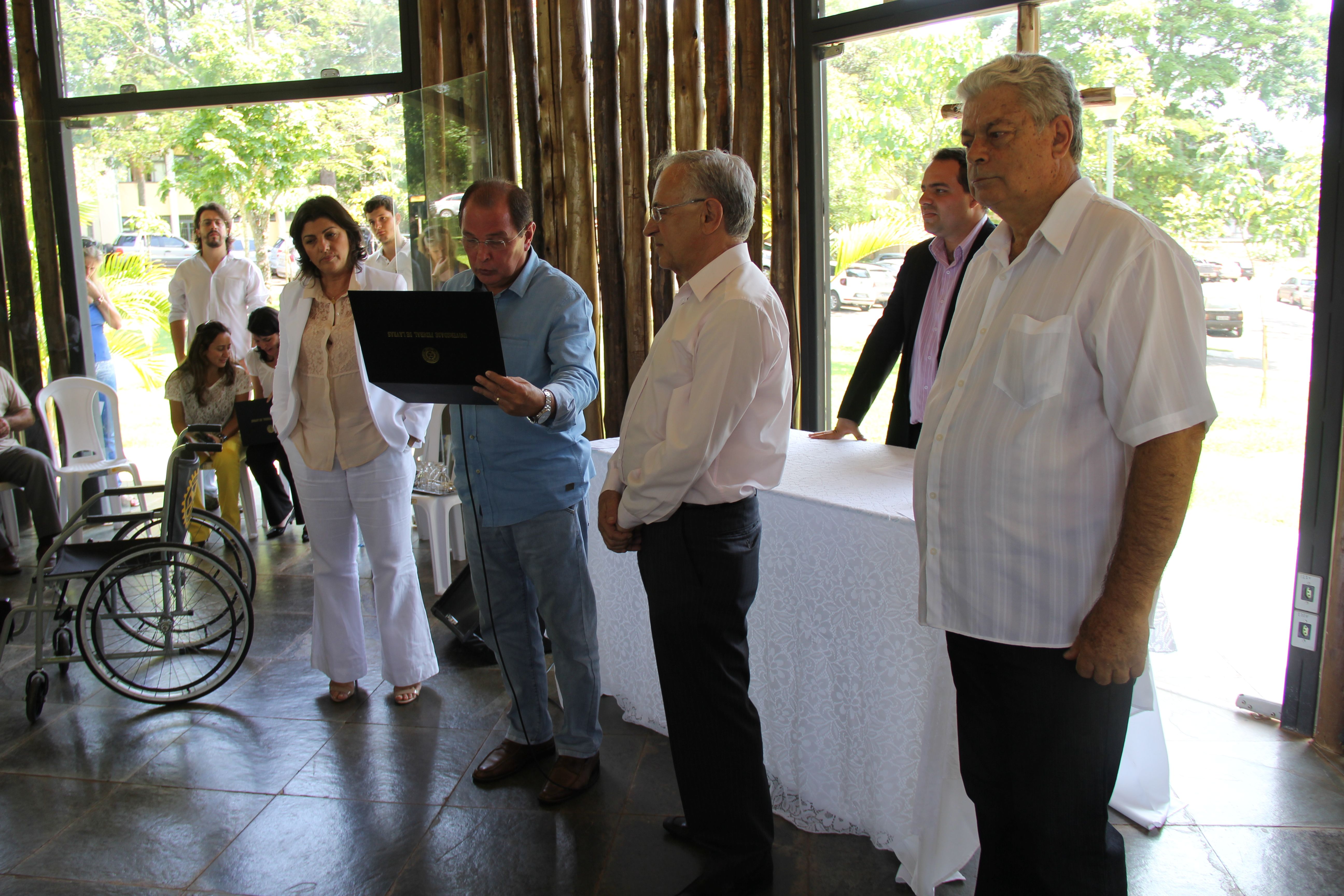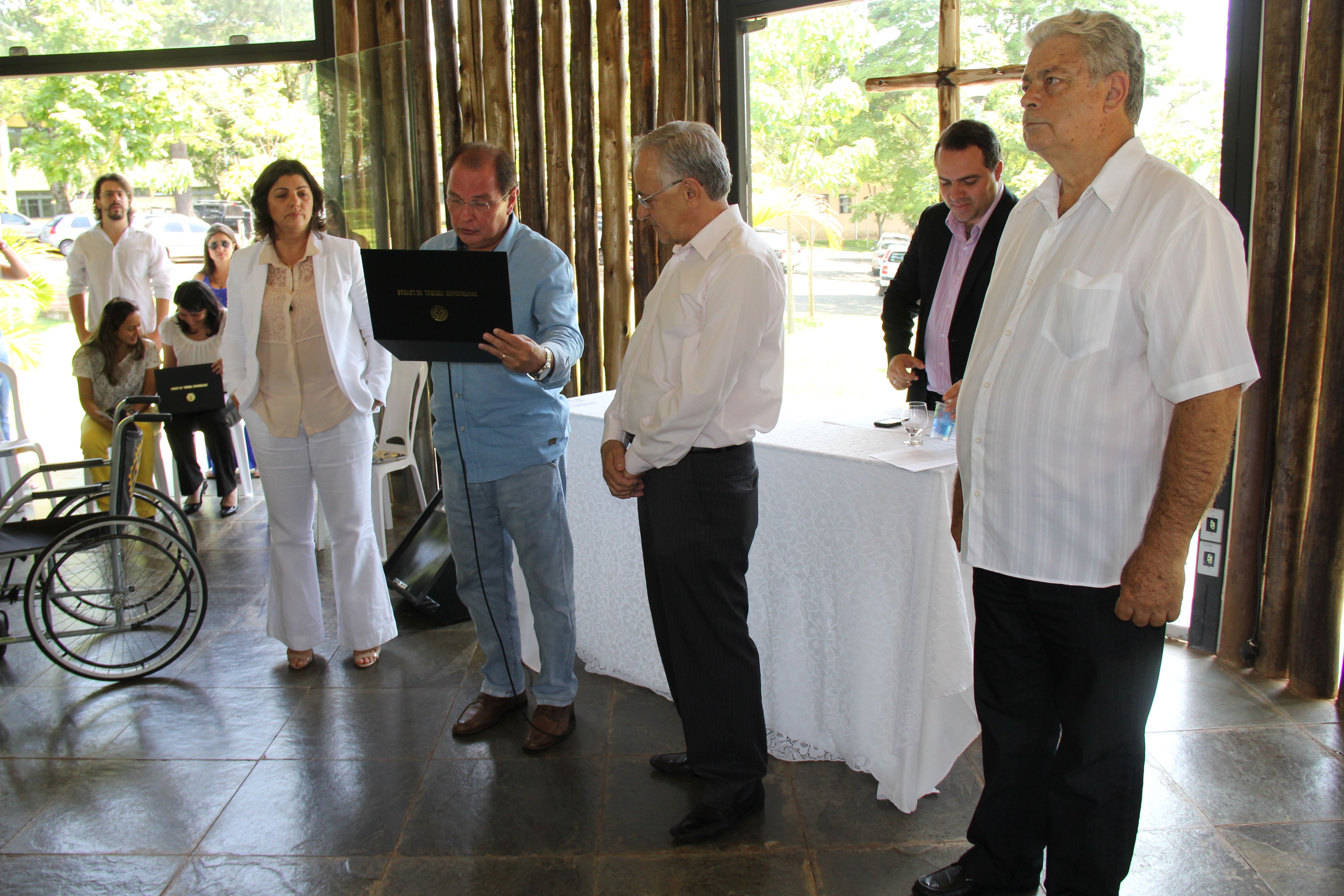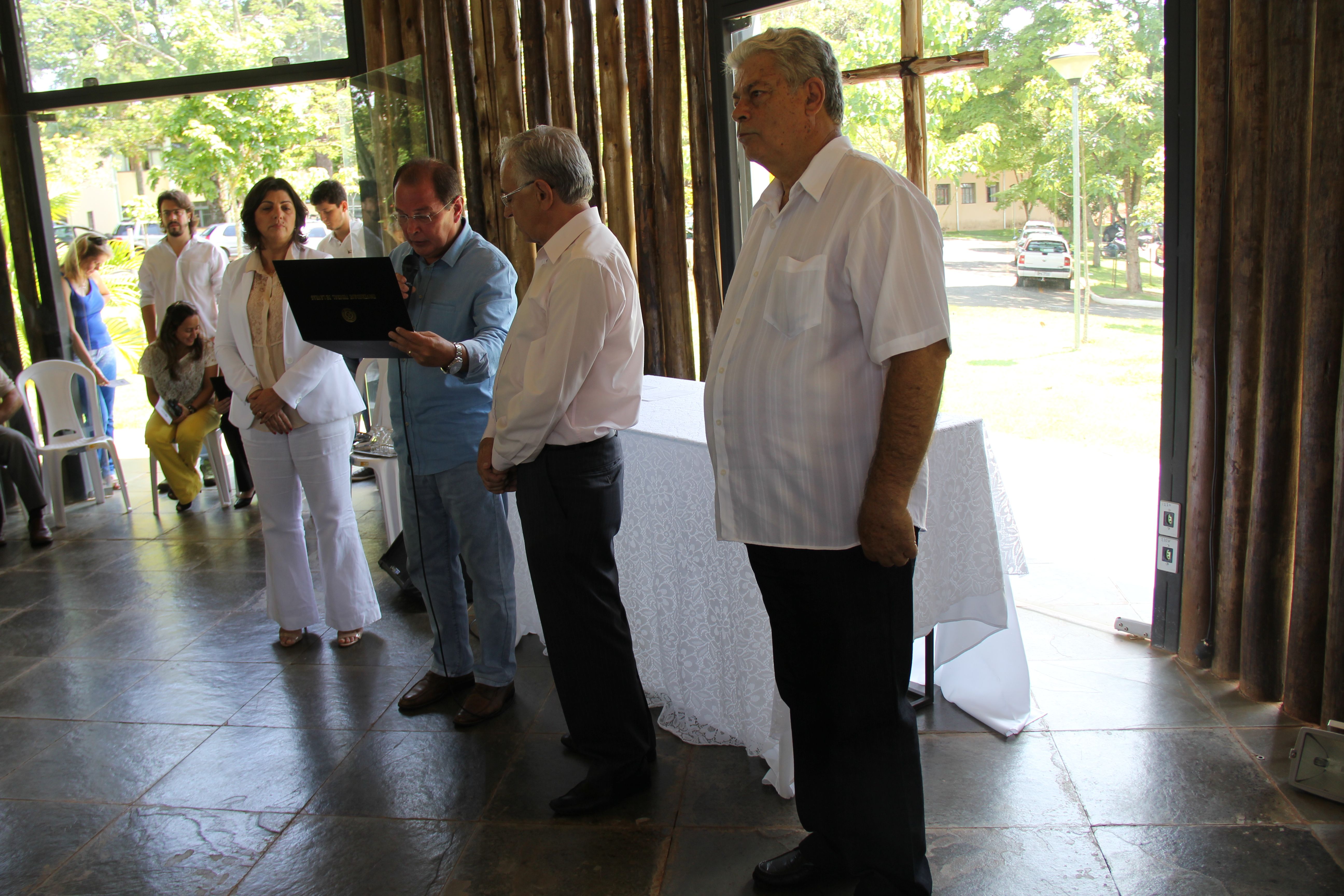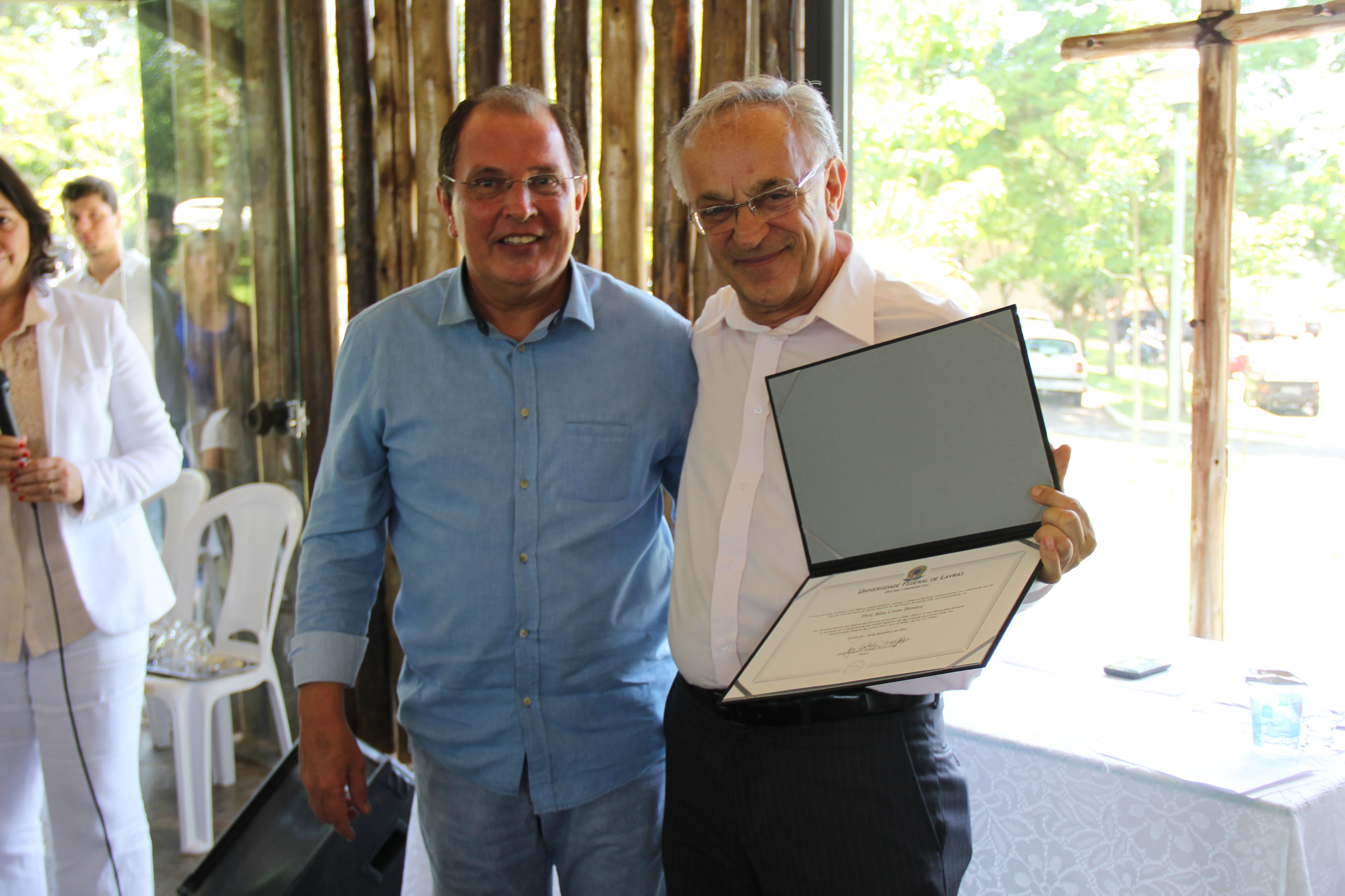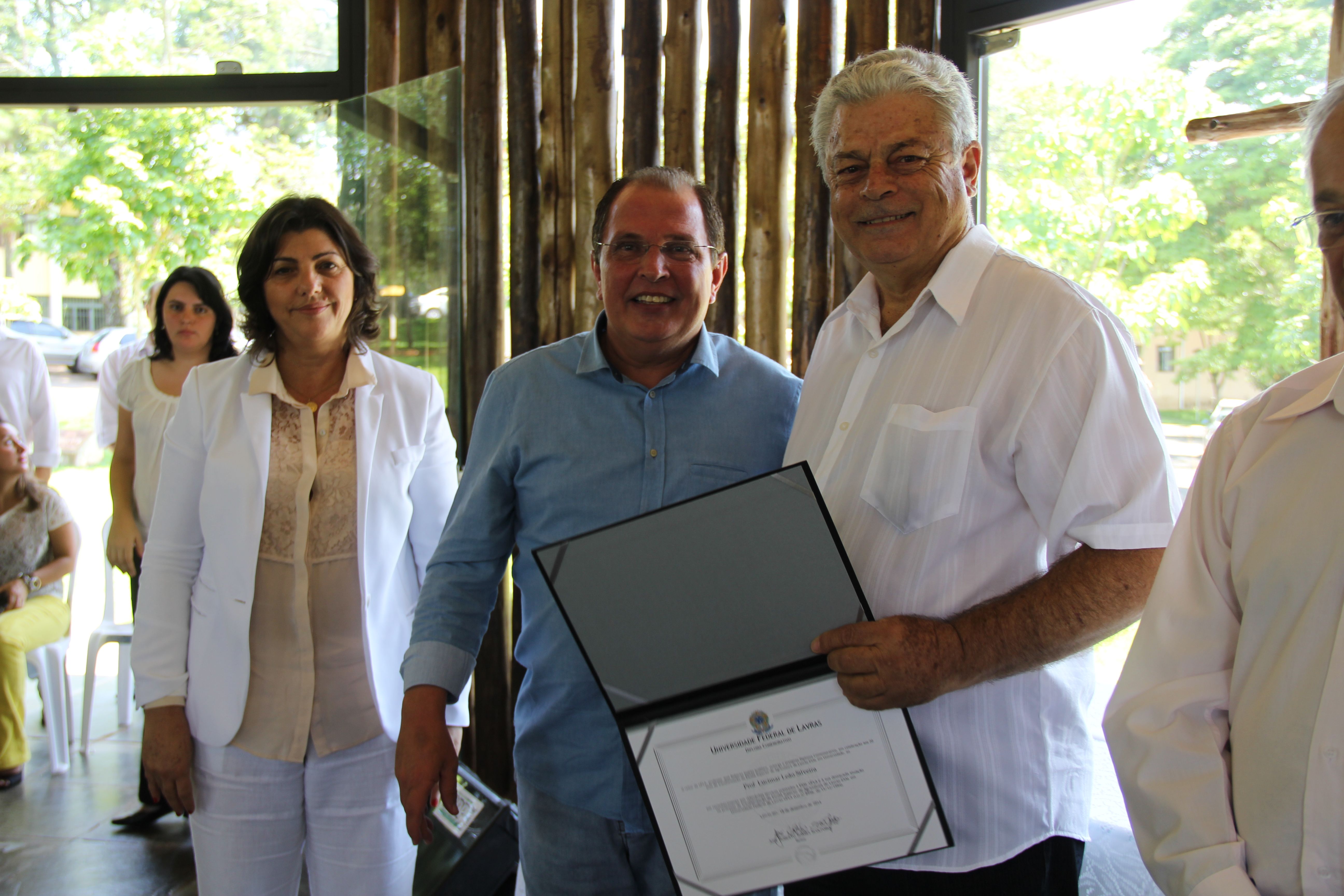 De forma singela e com o objetivo de simbolizar o reconhecimento da UFLA pelos esforços empenhados no processo de transformação em universidade, o reitor, professor Scolforo, fez a entrega de um certificado ao prefeito Silas, diretor da ESAL no período da transformação (1991 a 1996) e também ao professor Lucimar Leão Silveira, servidor que liderou a comissão para dar celeridade ao processo.
