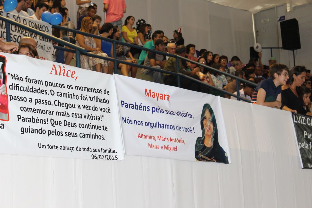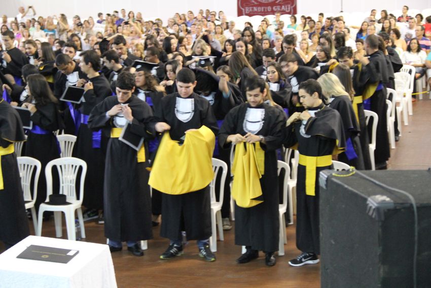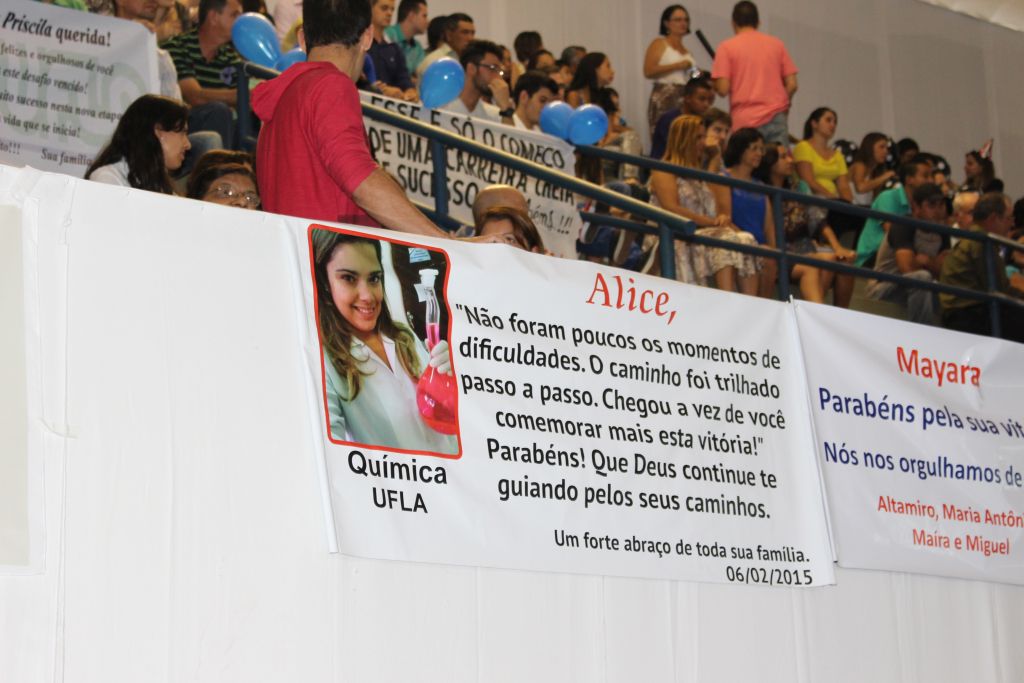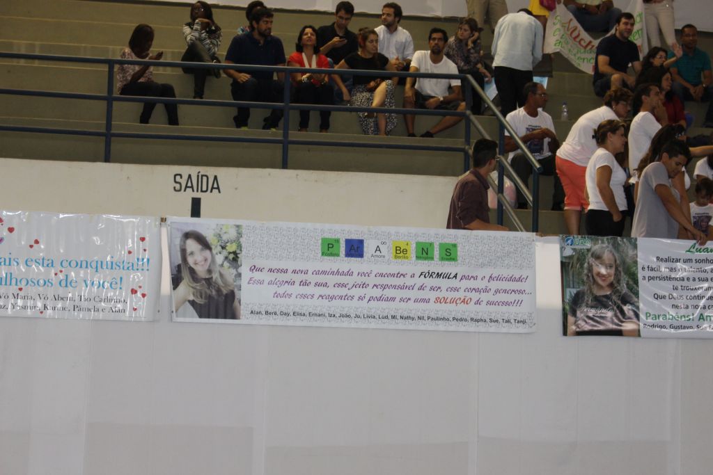 A primeira solenidade contou com a presença dos formandos dos cursos de Ciência da Computação, Engenharia de Alimentos, Química (Licenciatura), Química (Bacharelado), Ciências Biológicas (Licenciatura), Ciências Biológicas (Bacharelado), Educação Física-Licenciatura, Educação Física – Bacharelado, Matemática (Licenciatura), Sistemas de Informação, Física (Licenciatura), Nutrição, Engenharia de Controle e Automação, Engenharia Ambiental e Sanitária e Letras (Português e Inglês – Licenciatura).