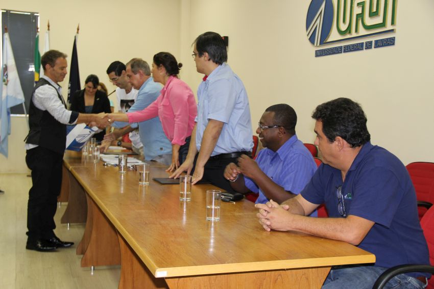 Na composição da mesa de honra da cerimônia, estavam o reitor da UFLA, professor José Roberto Soares Scolforo; a vice-reitora, professora Édila Vilela de Resende Von Pinho; o diretor de Desenvolvimento de Pessoas, Georges Francisco Vilela Zouein; o presidente da Comissão de Ética, Adriano Higino Freire; o primeiro secretário da Seção Sindical dos Docentes da UFLA (Adufla), professor Marcelo de Carvalho Alves; o presidente do Sindicato dos Servidores da UFLA (SindUFLA), César Raimundo da Silva; o representante da Comissão Interna de Supervisão do Plano de Carreira dos cargos técnico-administrativos (Cista), Reginaldo Ferreira Souza; e o representante da Comissão Permanente de Pessoal Docente (CPPD), professor Eduardo Pinto.